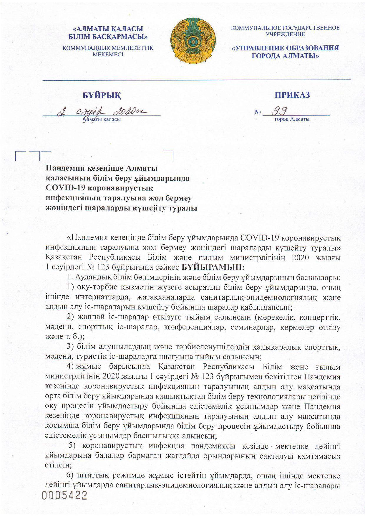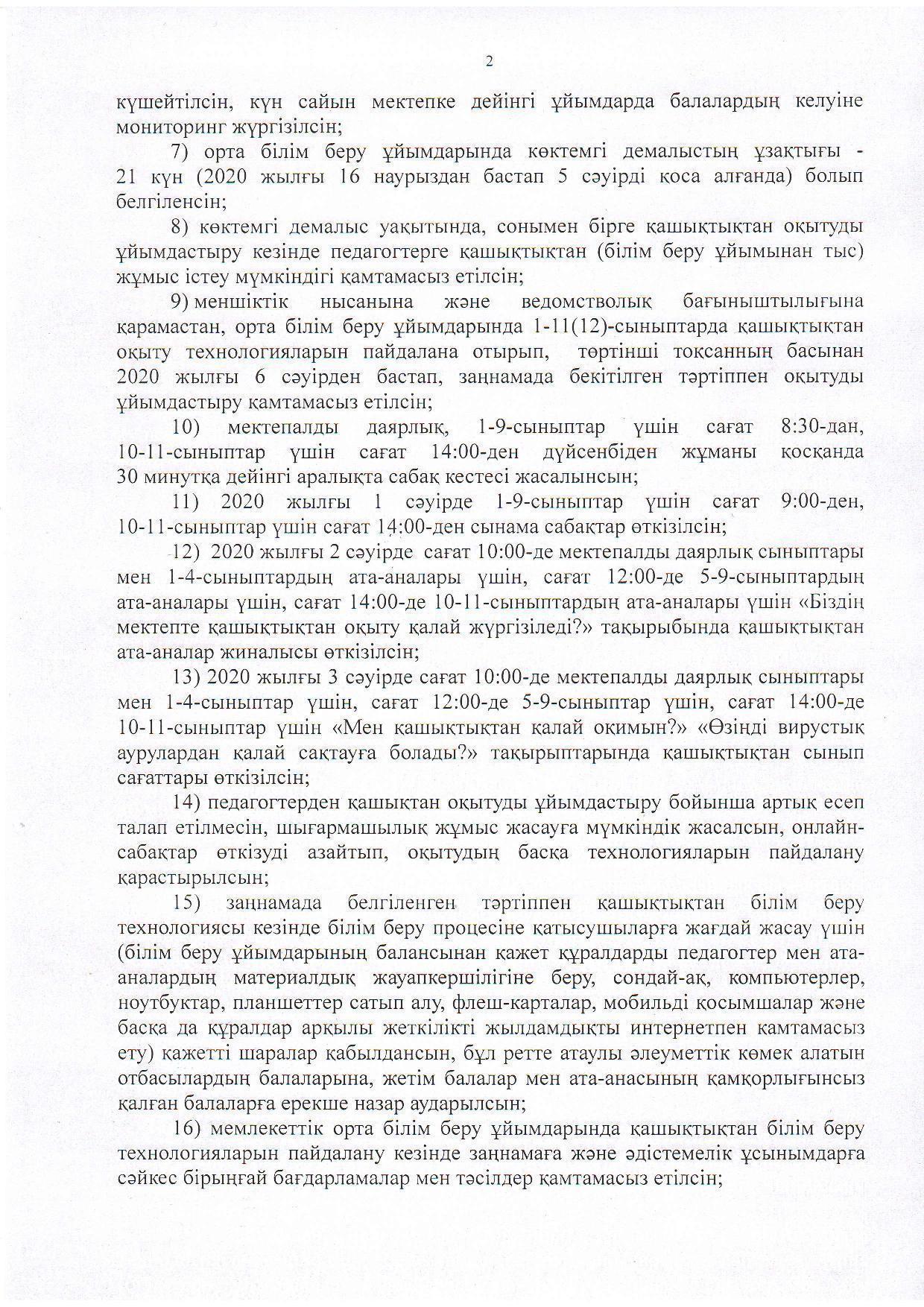 02 апрель 2020 0 1 2 3 4 5 COVID-19 короновирустық инфекцияның таралуына жол бермеу жөніндегі шараларды күшейту туралы