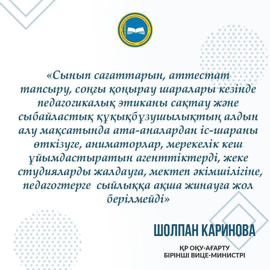 » Мектептер салтанатты шара өткізу туралы шешімді де өздері дербес қабылдайды.
