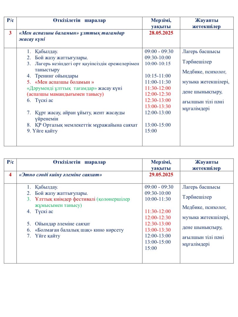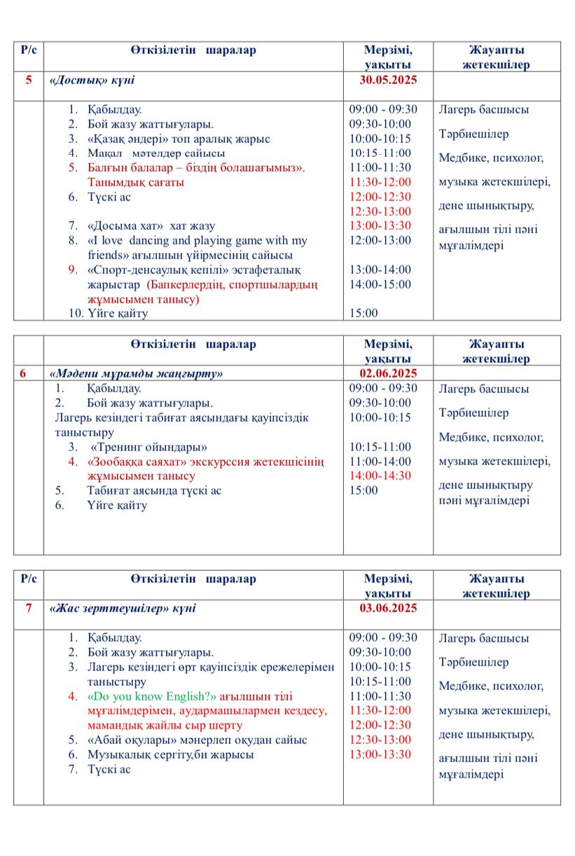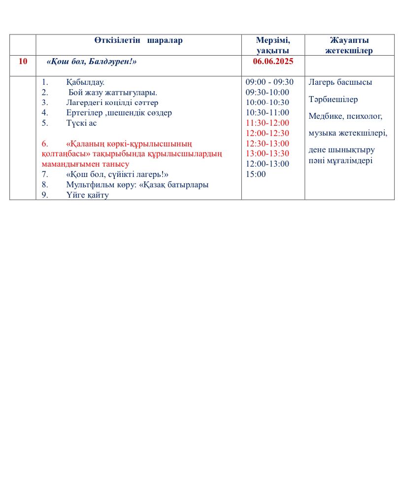 "БАЛДӘУРЕН" жазғы лагерінің жоспары