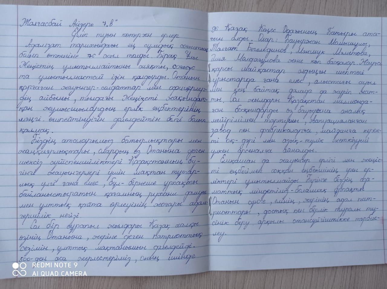 «Ерлік туын көтерген ерлер» тақырыбында шығарма жазды.