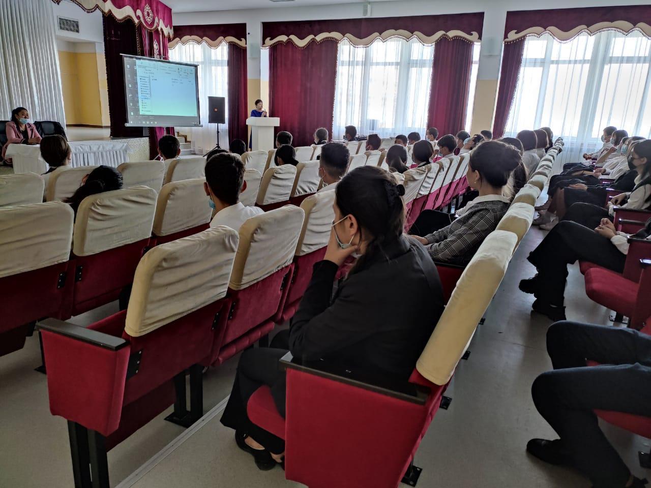 Мақсаты – оқушылардың салауатты өмір салтын ұстануға бейімділігін арттыру, есірткіні және психотроптық заттарды пайдаланудың алдын алу бойынша түсіндірме жұмыстарын жүргізу. Кездесу барысында нарколог маман оқушыларға нашақорлықтың алдың алу, темекі шегу, ішімдіктің зияны туралы толық ақпарат берді. Оқушылар дәрігерге бірқатар сұрақтар қойып, жауап алды. «Нашақорлық-қауіпті дерт» атты бейнефильм көрсетілді. Лекцияға 75 оқушы қатысты.