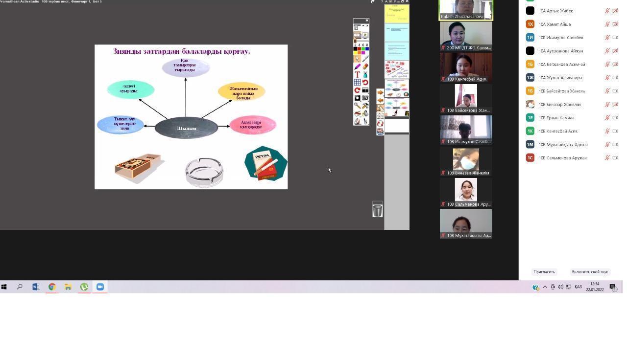 №200 мектеп - гимназиясында 2022 жылдың 22 қаңтар күні 10 «В» сынып жетекшісі К.О.Жүзжасарова «Денсаулықтың достары мен қастары» тақырыбында ашық тәрбие сағатын өтті.