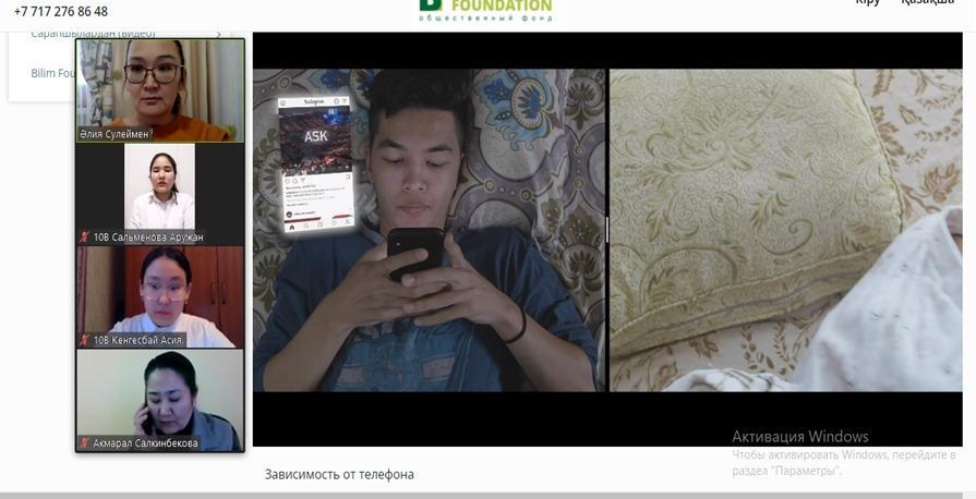 2022 жылдың 26 қаңтар күні 9-11 сынып оқушыларына педагог-психолог Сүлеймен Әлия Сатыбалдықызының ұйымдастыруымен ZOOM платформасында «Уақытыңды тиімді пайдалан!» тақырыбында әңгіме жүргізіліп, уақытты қалай тиімді пайдалануға болатындығы туралы біршама психологиялық кеңестер берілді, бейнематериал көрсетілді. Оқушылардың ойлары тыңдалып, бос уақыттарында қандай пайдалы іспен айналысатындықтары туралы пікір алмасты. Сонымен қатар, «Телефонның зияны» туралы бейнематериал көрсетіліп, уақытты пайдалы өткізу керектігіне байланысты кеңестер берілді.