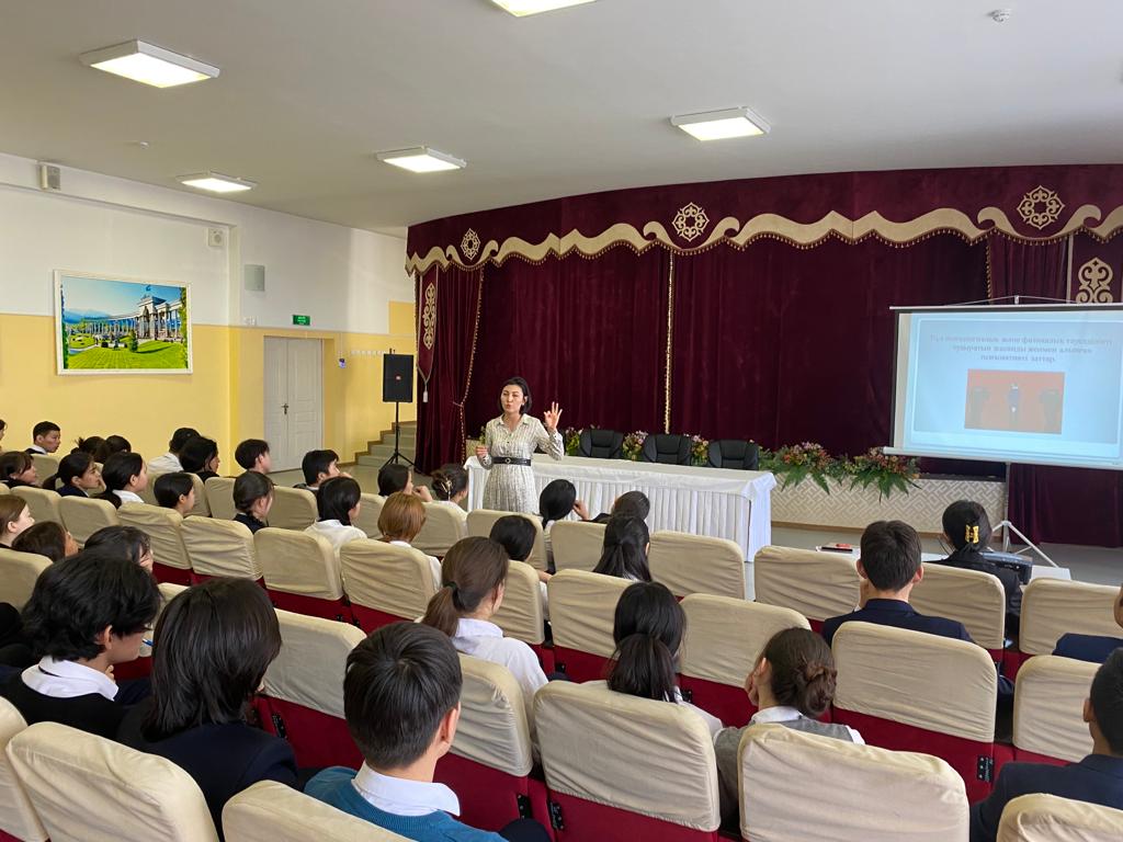 Мақсаты – оқушылардың салауатты өмір салтын ұстануға бейімділігін арттыру, есірткіні және психотроптық заттарды пайдаланудың алдын алу бойынша түсіндірме жұмыстарын жүргізу. Кездесу барысында нарколог маманы оқушыларға нашақорлықтың алдың алу, темекі шегу, ішімдіктің зияны туралы толық ақпарат берді. Оқушылар дәрігерге бірқатар сұрақтар қойып, жауап алды.