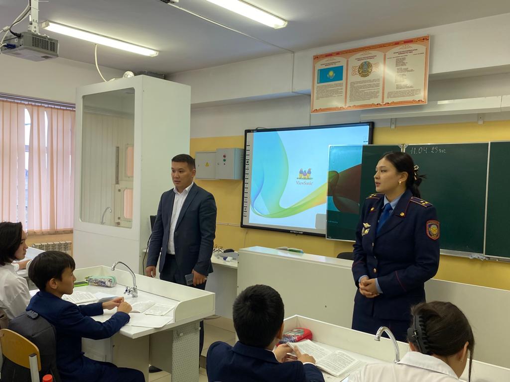 Мақсаты – оқушылардың салауатты өмір салтын ұстануға бейімділігін арттыру, есірткіні және психотроптық заттарды пайдаланудың алдын алу бойынша түсіндірме жұмыстарын жүргізу. Кездесу барысында оқушыларға нашақорлықтың алдың алу, темекі шегу, ішімдіктің зияны туралы толық ақпарат берді.