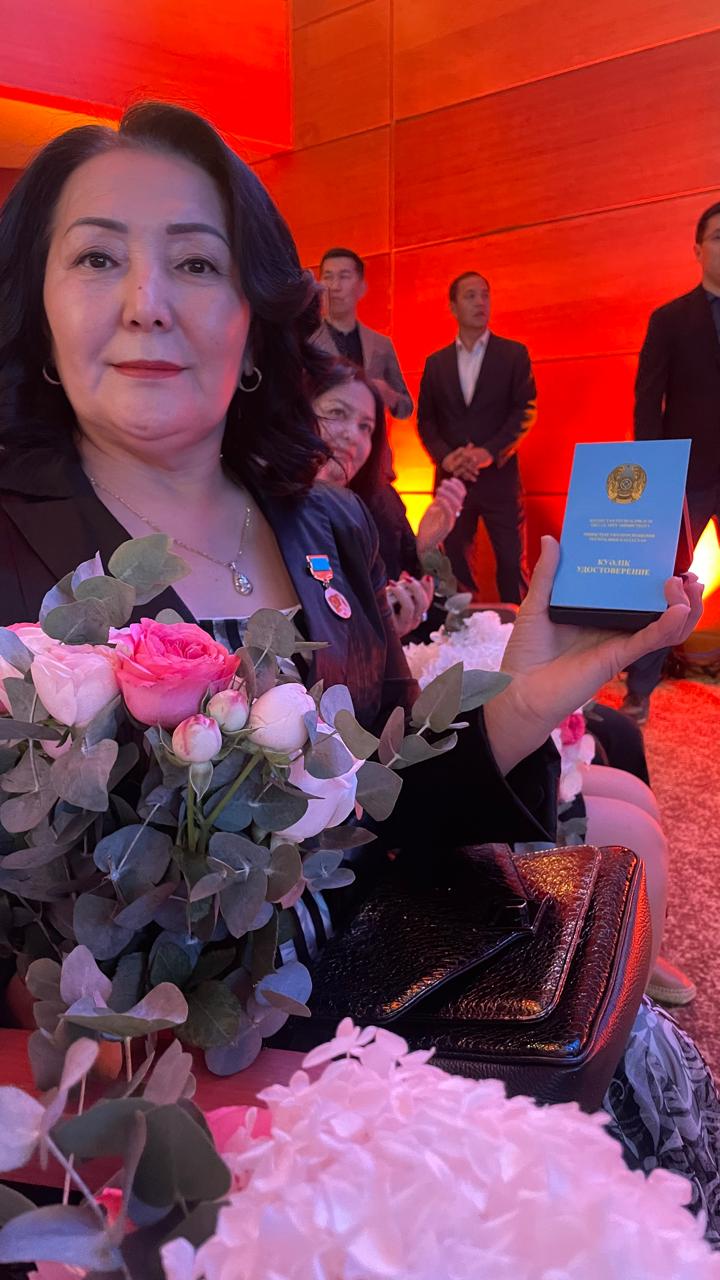 Қазақстан Республикасы Оқу-ағарту министрінің «Білім беру ісінің құрметті қызметкері» төсбелгісімен марапатталды.