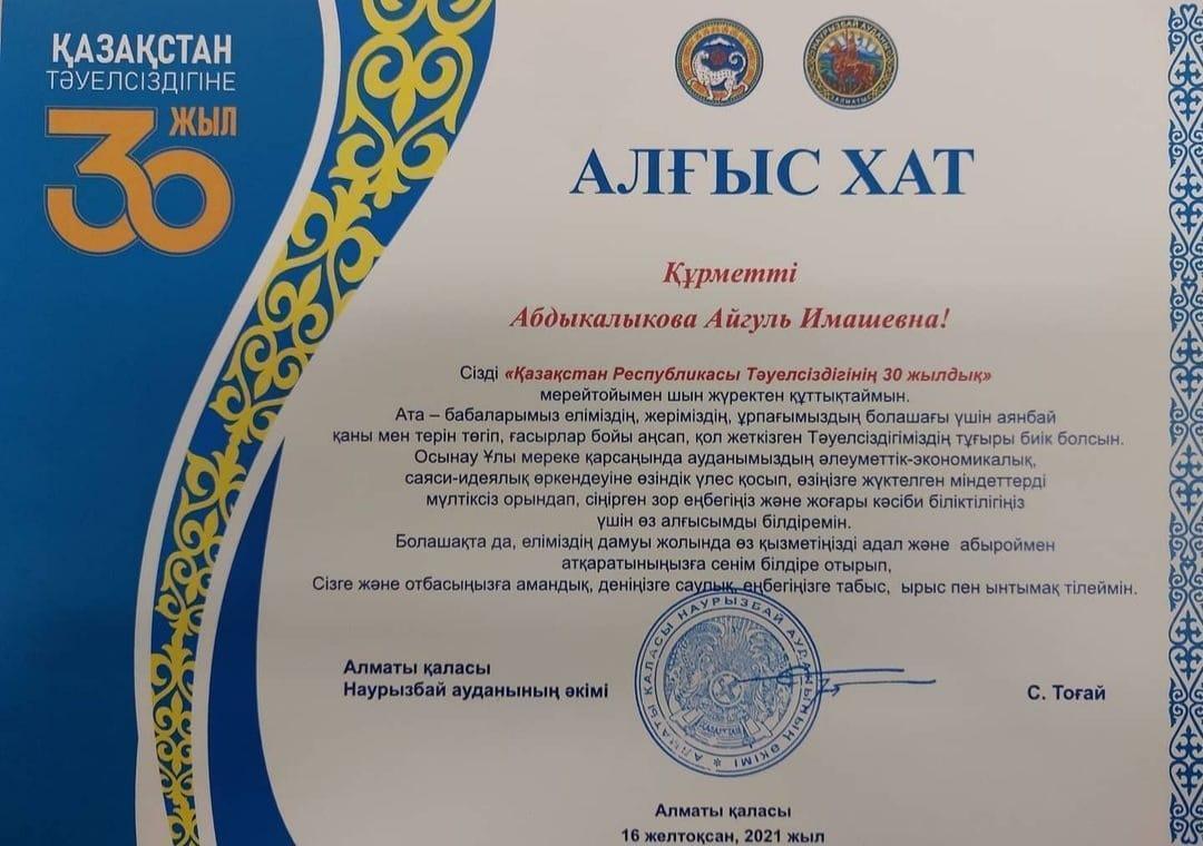 Құрметті Абдыкалыкова Айгуль Имашевна!