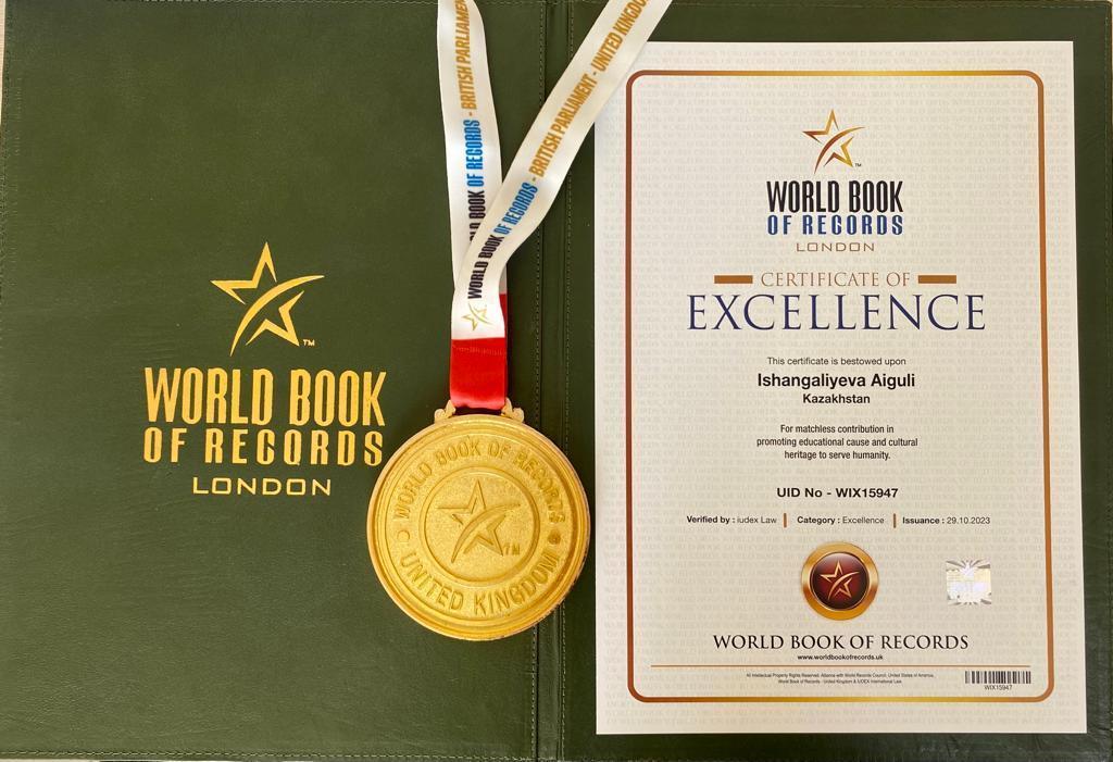 Әлем рекордтар кітабының сертификатымен және медалімен марапатталды.