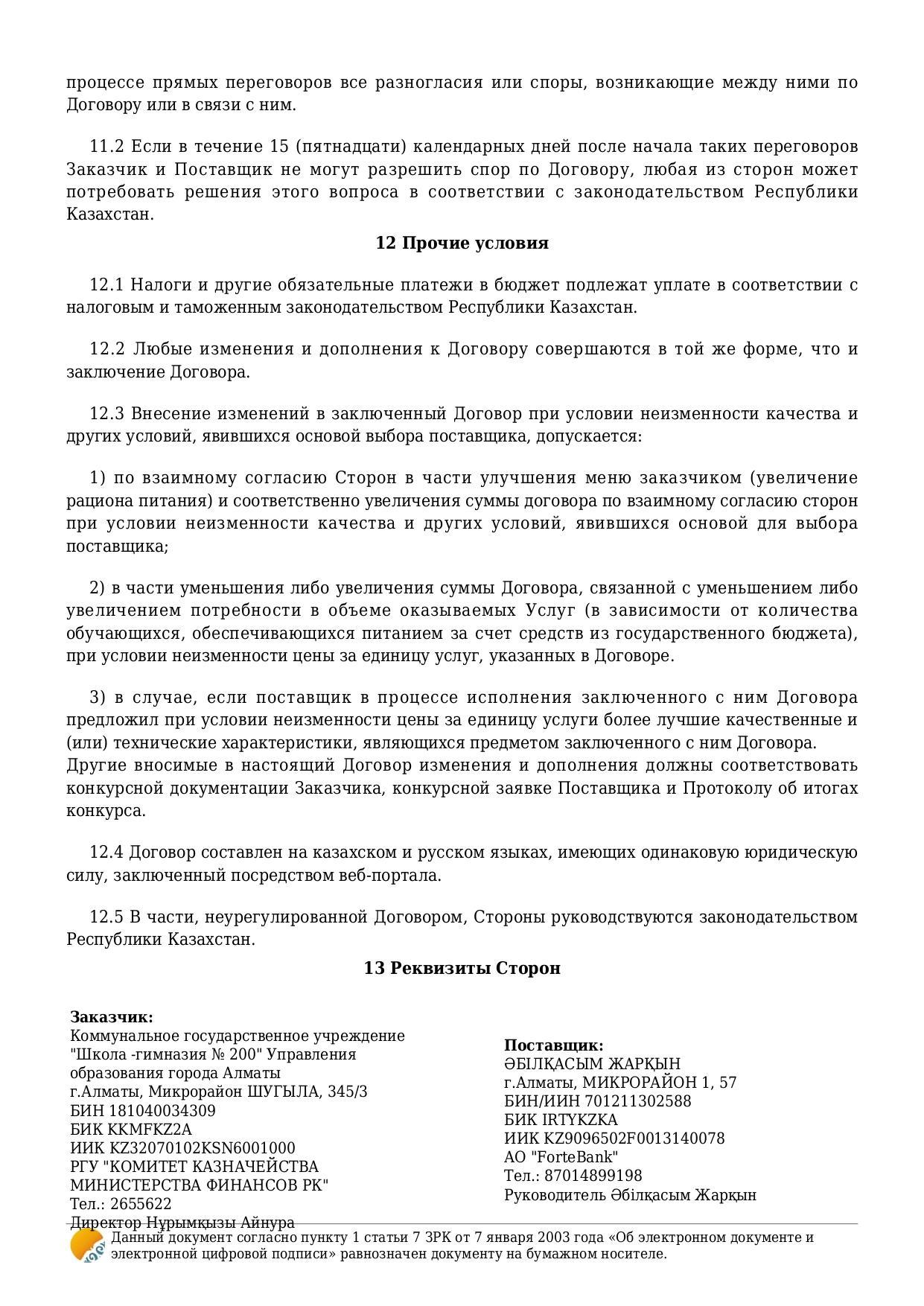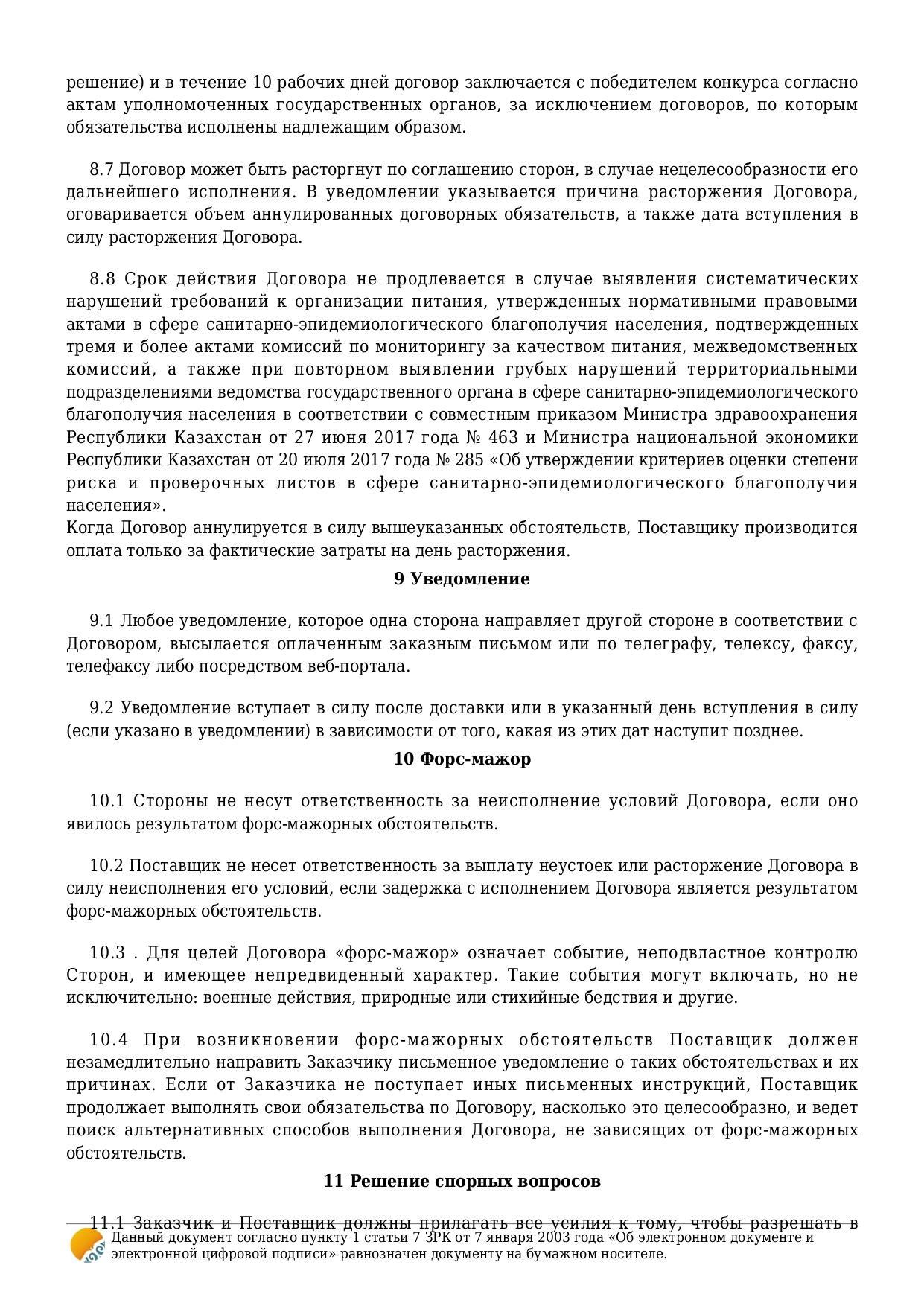 Тамақтандыру бойынша шарттар