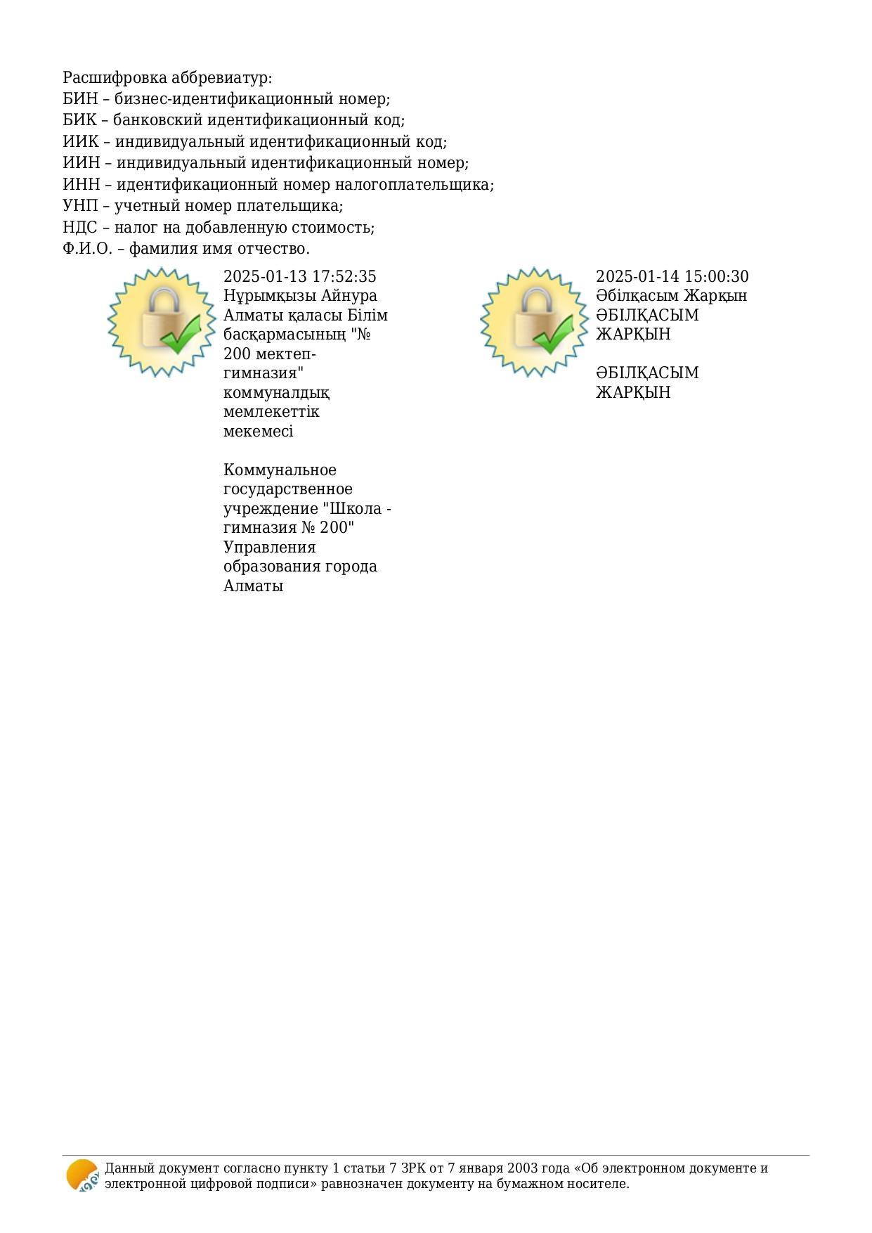 Коммунальное государственное учреждение «Школа-гимназия №200» Управления образование города Алматы