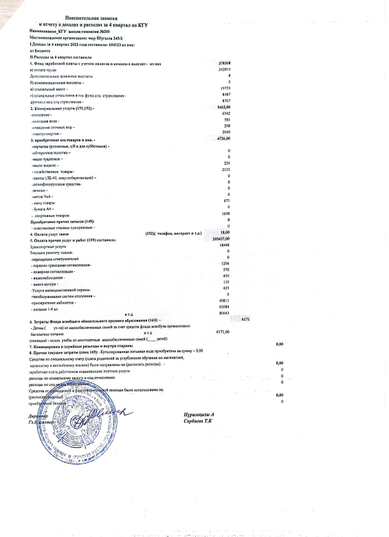 » Отчет о доходах и расходах за 4 квартал 2023года