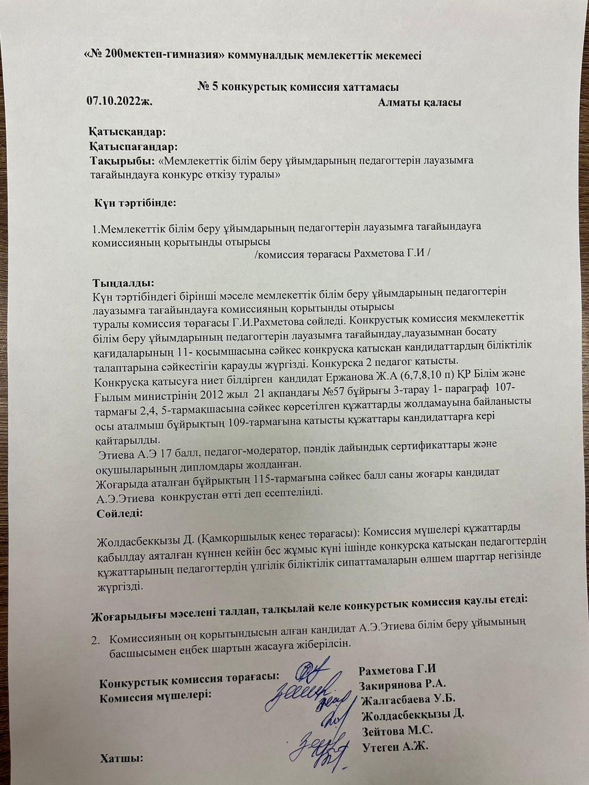 Коммунальное государственное учреждение «Школа-гимназия №200» Управления образование города Алматы
