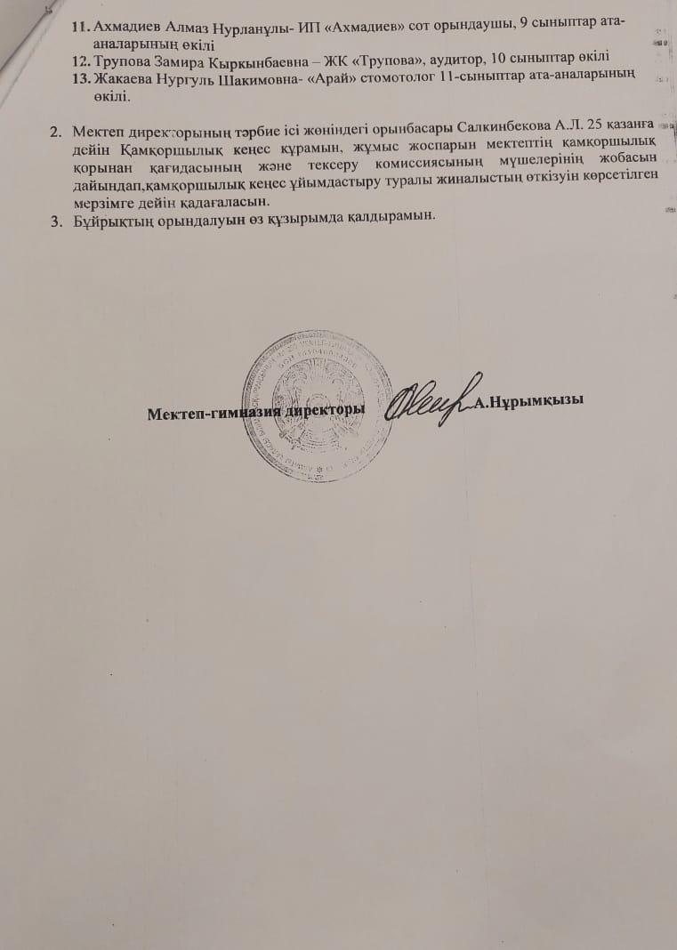 Қамқоршылық кеңес жиналысының хаттамасы