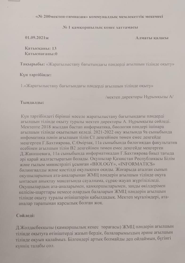 Коммунальное государственное учреждение «Школа-гимназия №200» Управления образование города Алматы