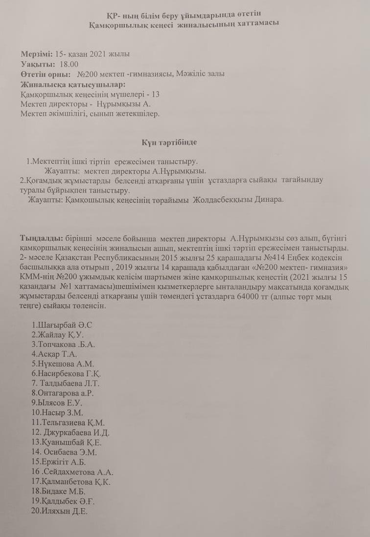 Коммунальное государственное учреждение «Школа-гимназия №200» Управления образование города Алматы