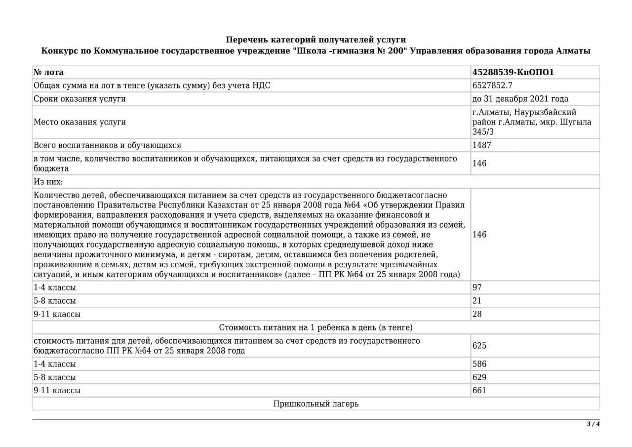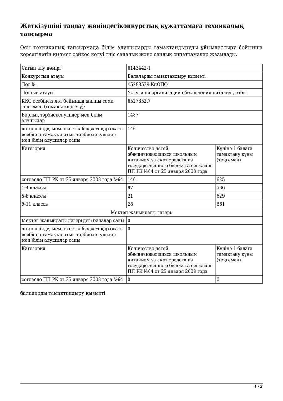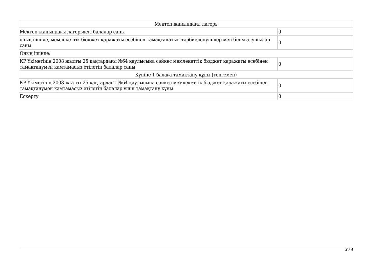 Тамақтандыру бойынша шарттар