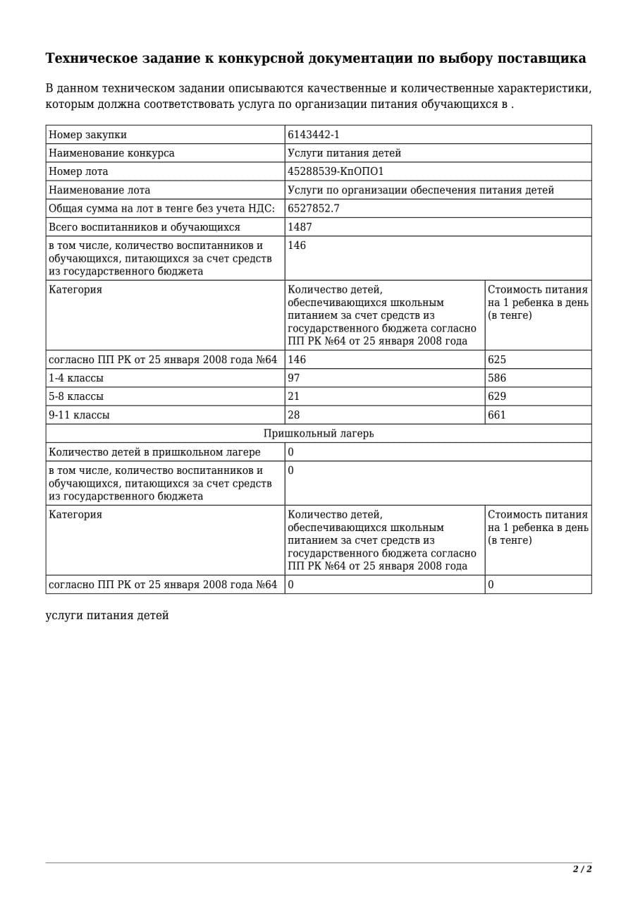 » Конкурсная документация по организации питания 2022 г