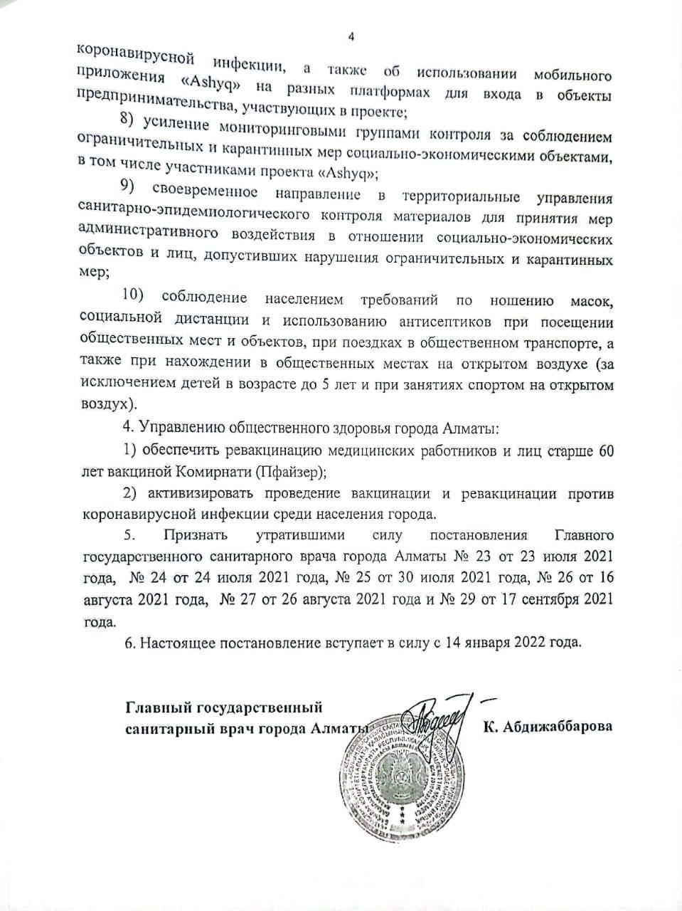 » Алматы қаласы бас мемлекеттік санитарлық дәрігері ҚАУЛЫ