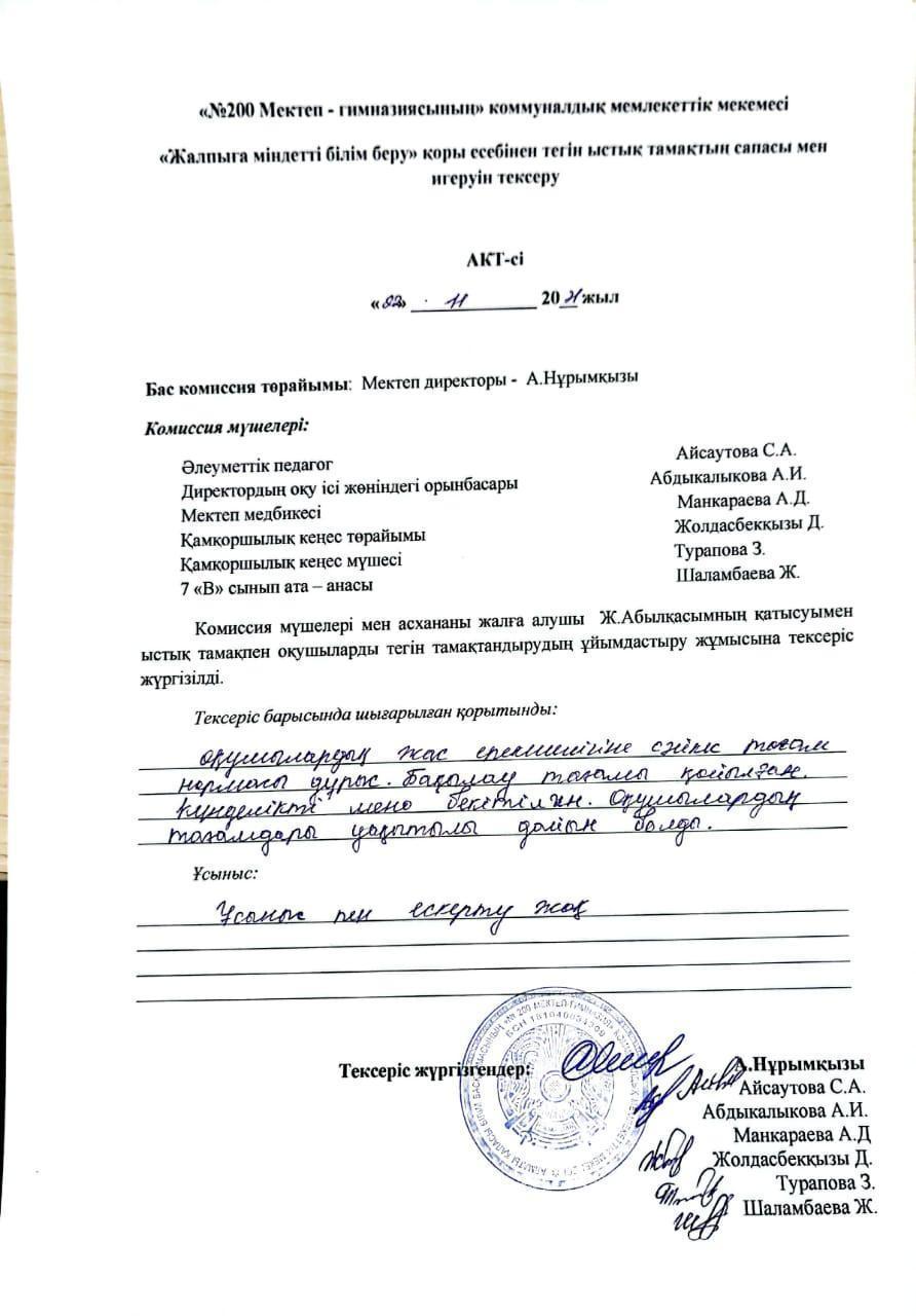 Коммунальное государственное учреждение «Школа-гимназия №200» Управления образование города Алматы