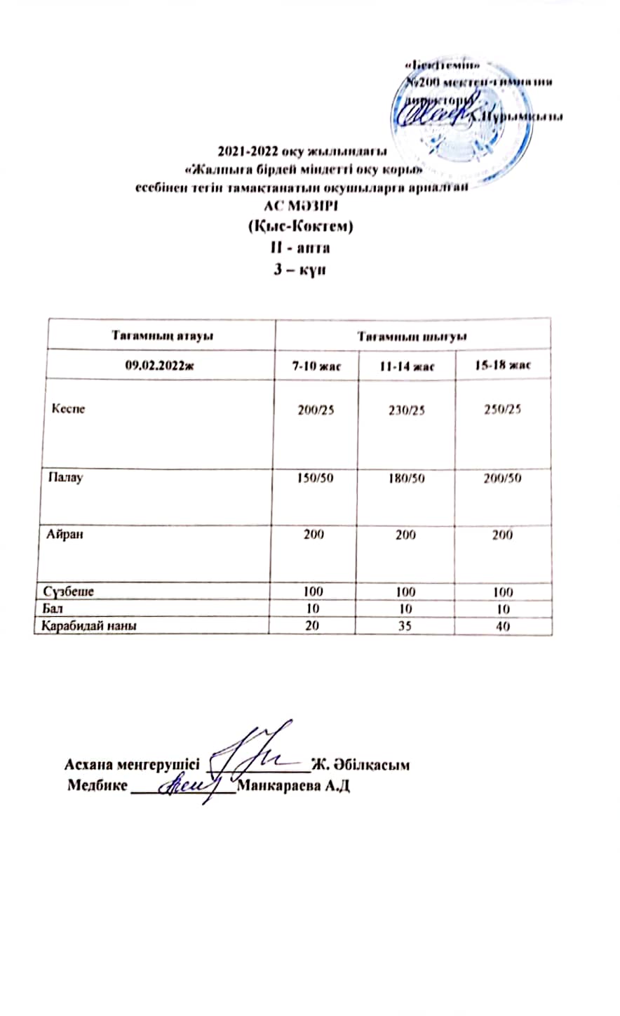 күнделікті ас мәзірі 09.02.2022
