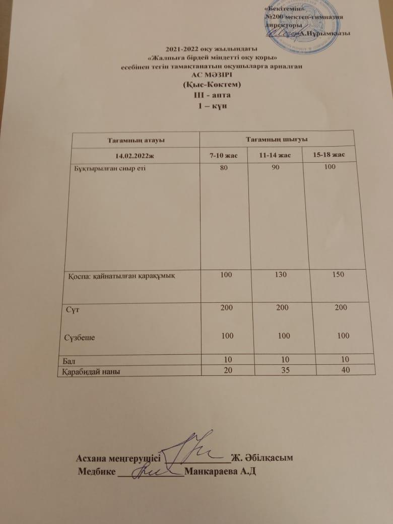 Күнделікті ас мәзірі 01.03.2022