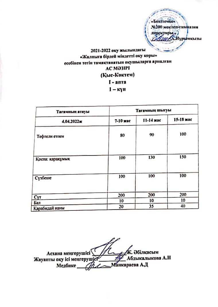 Күнделікті ас мәзірі 04.04.2022