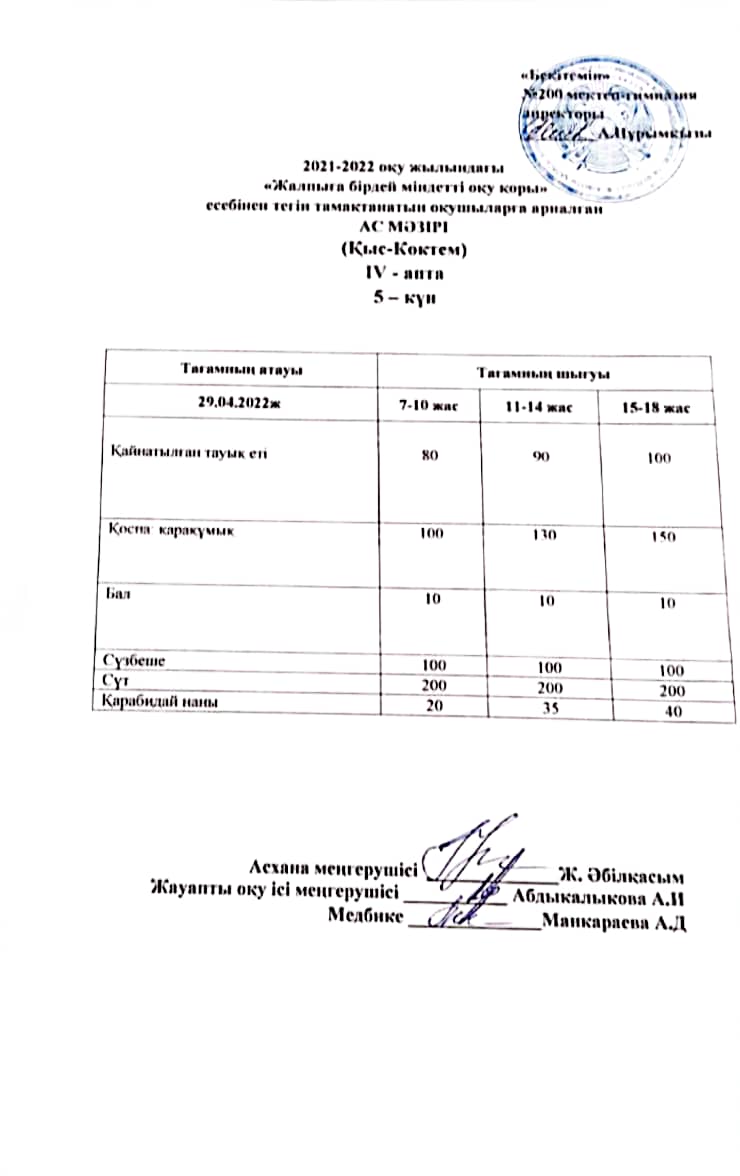 Күнделікті ас мәзірі 29.04.2022