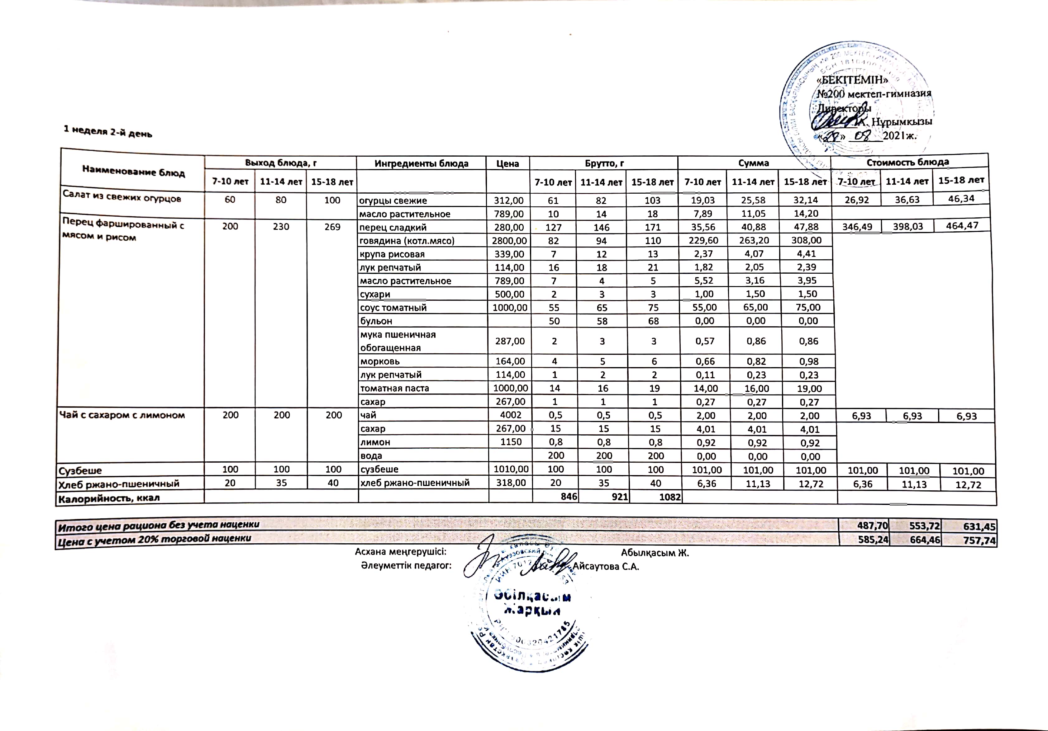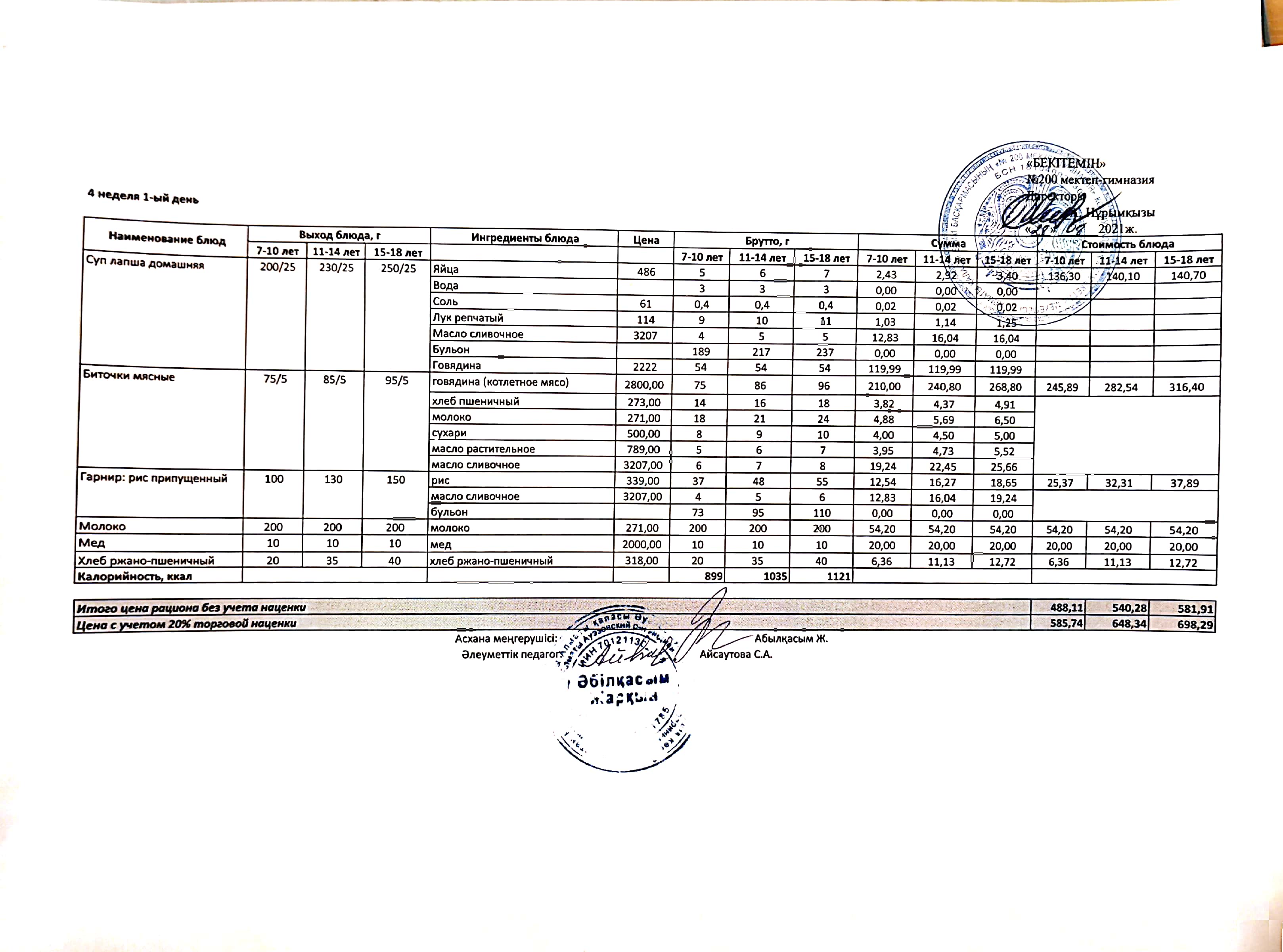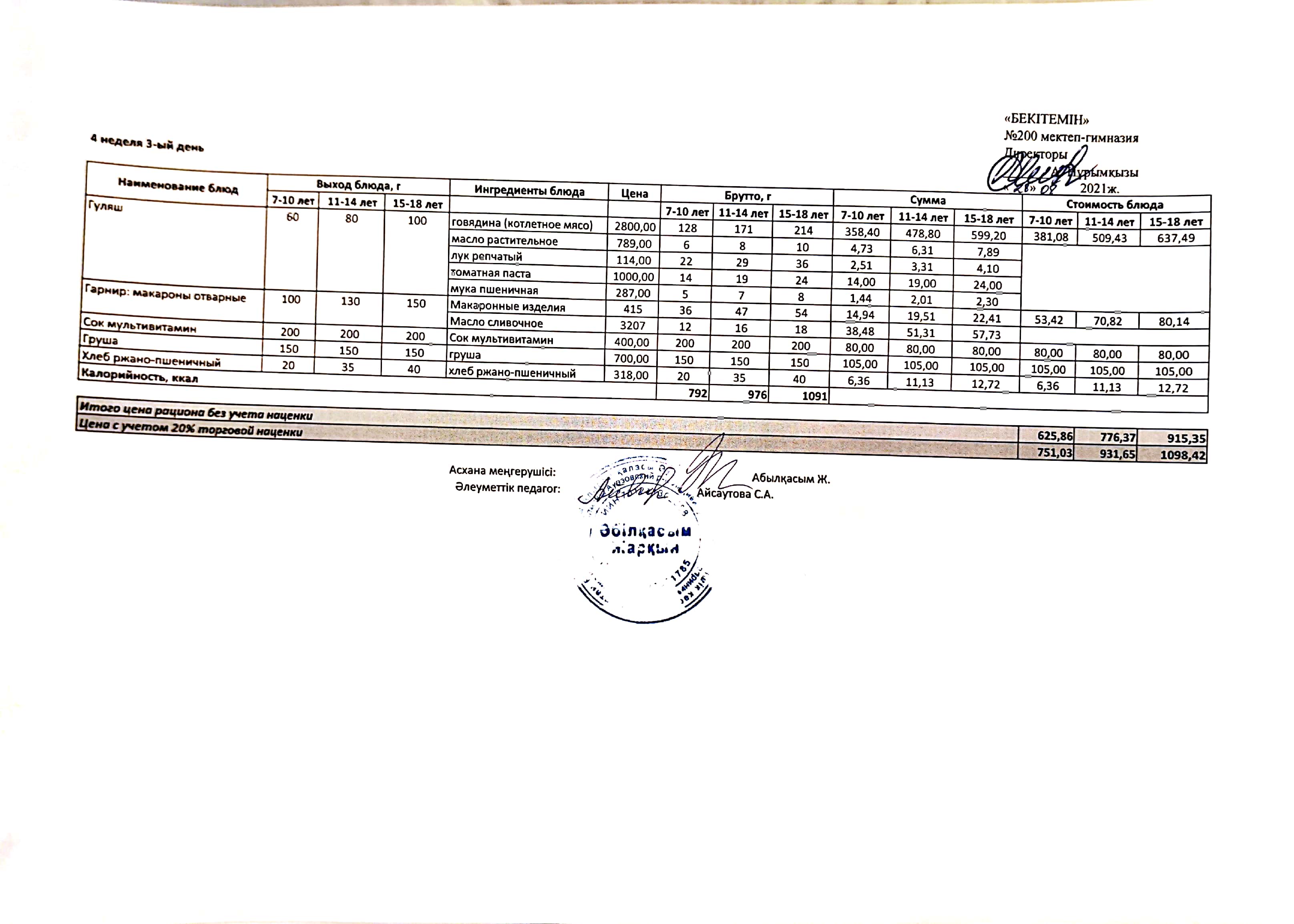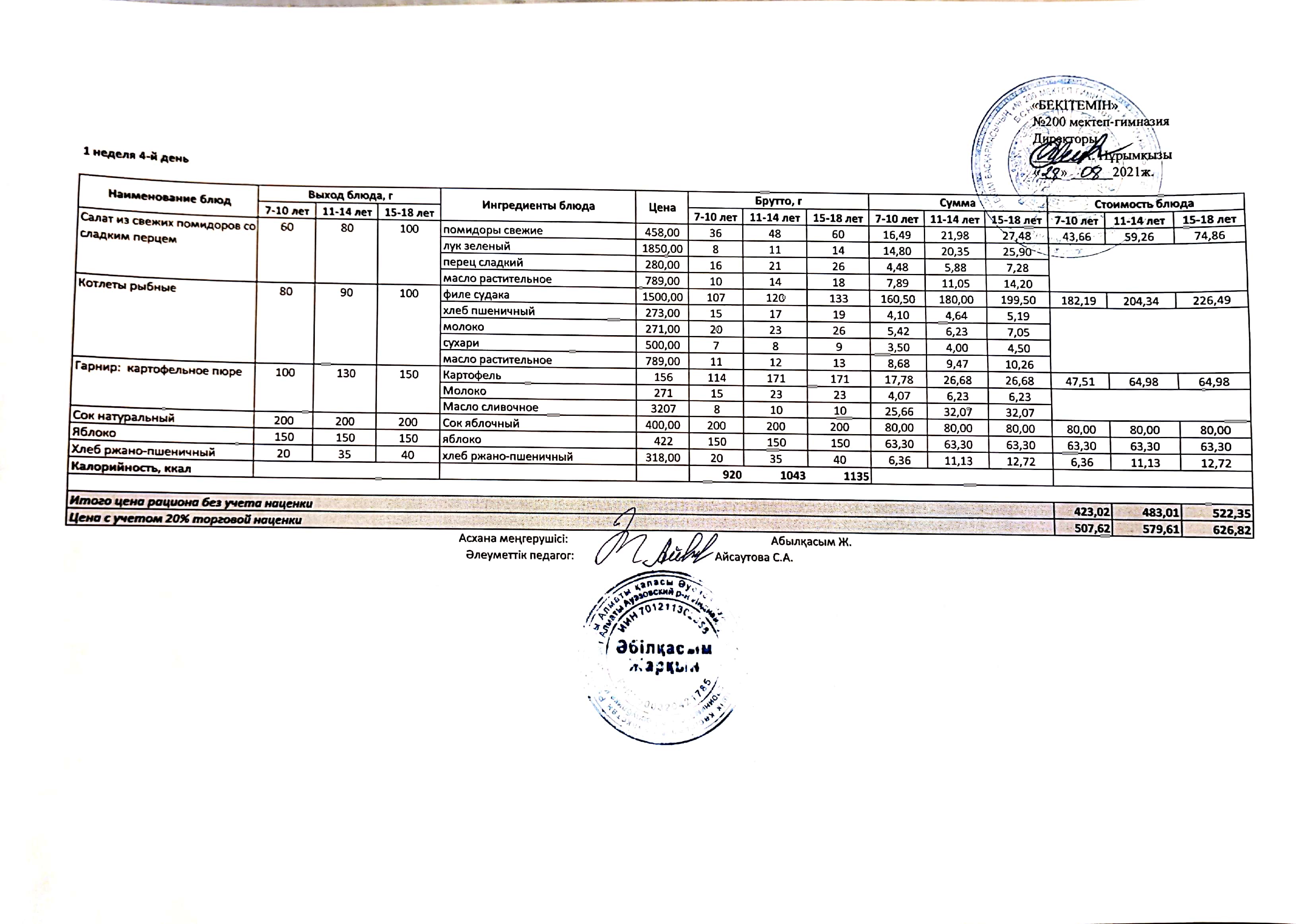 » 4 АПТАЛЫҚ МЕНЮ (жазғы және күзгі) 2021-2022 оқу жылы