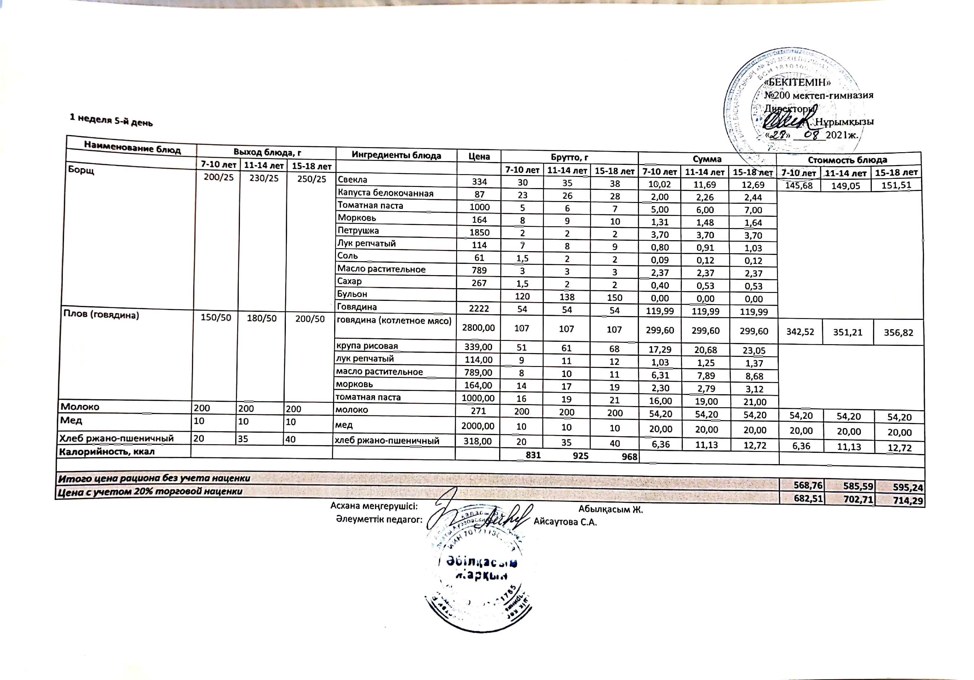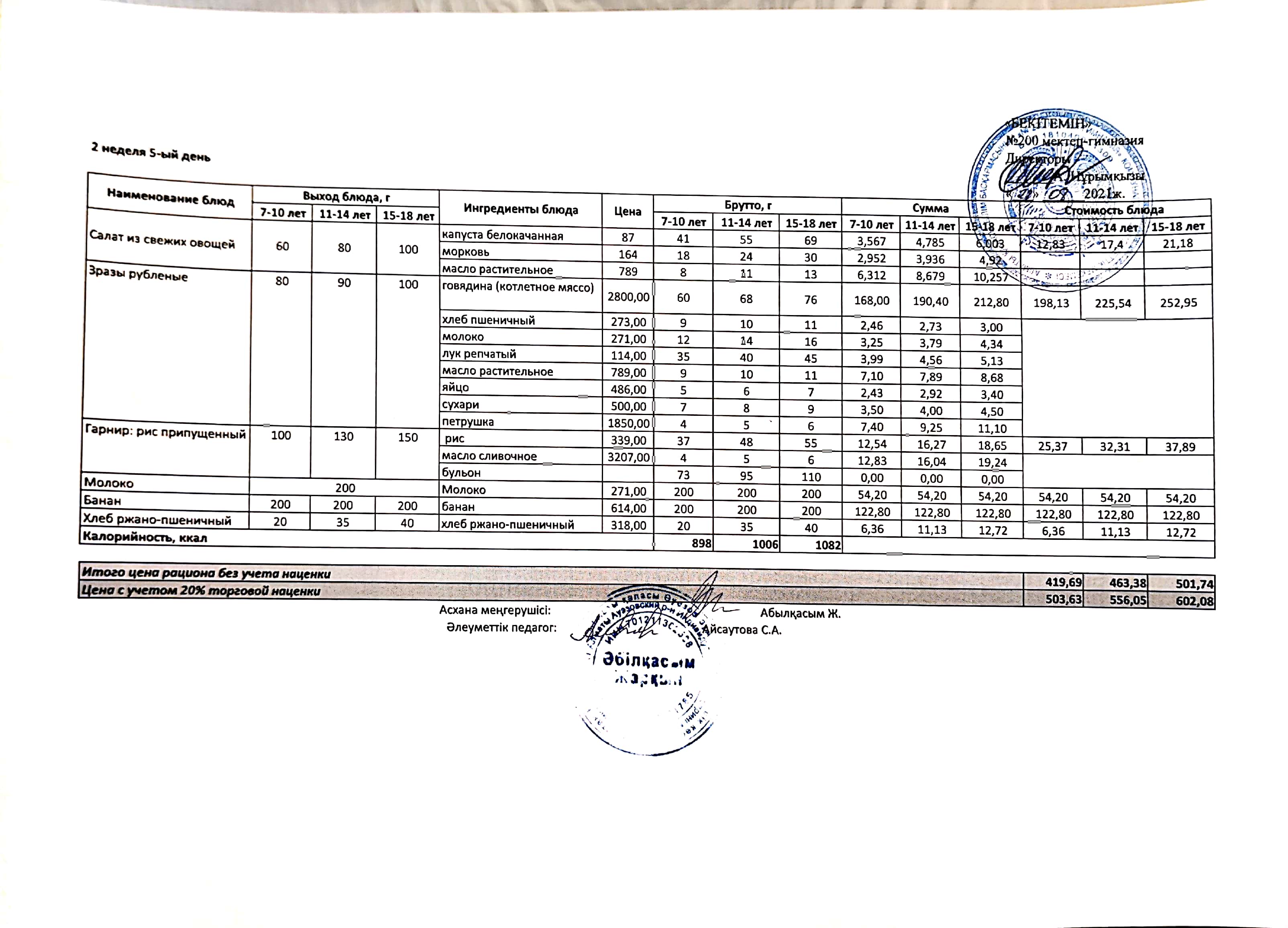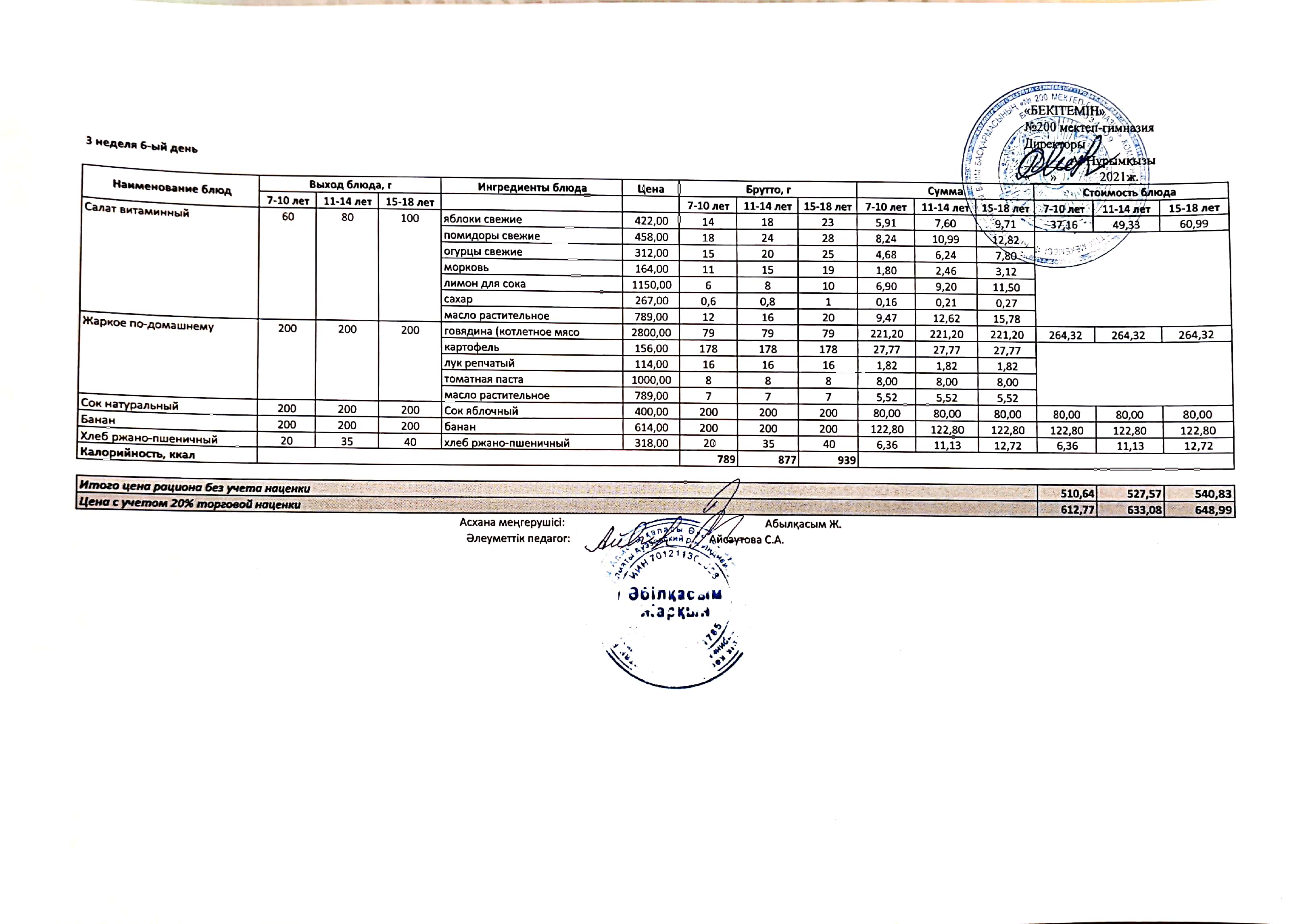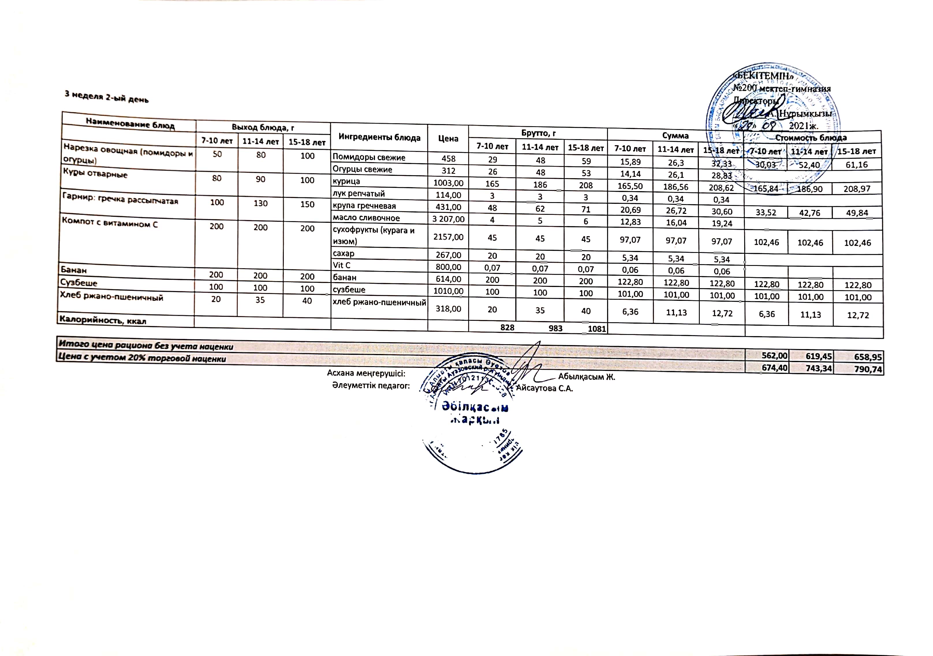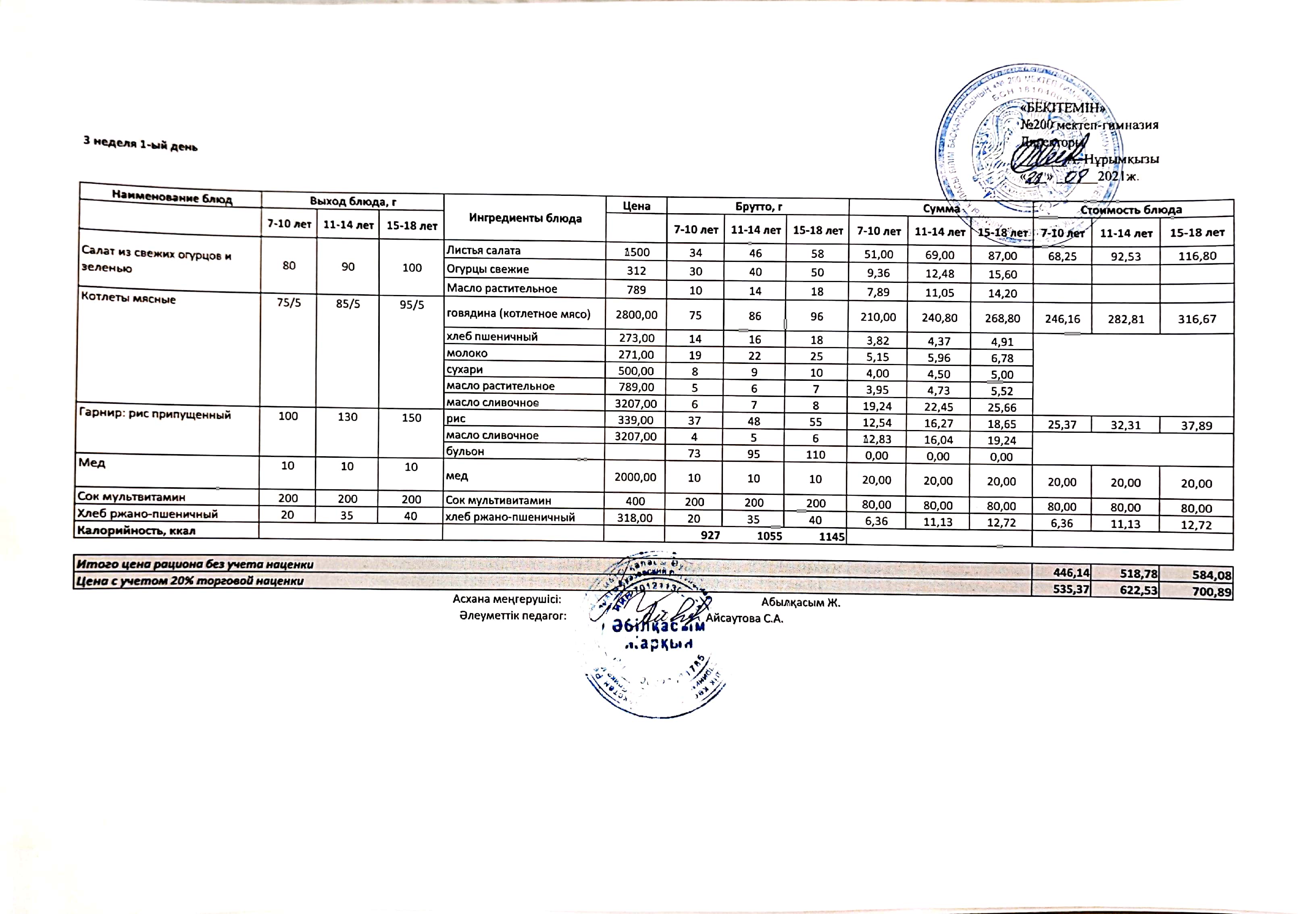 » 4 АПТАЛЫҚ МЕНЮ (жазғы және күзгі) 2021-2022 оқу жылы