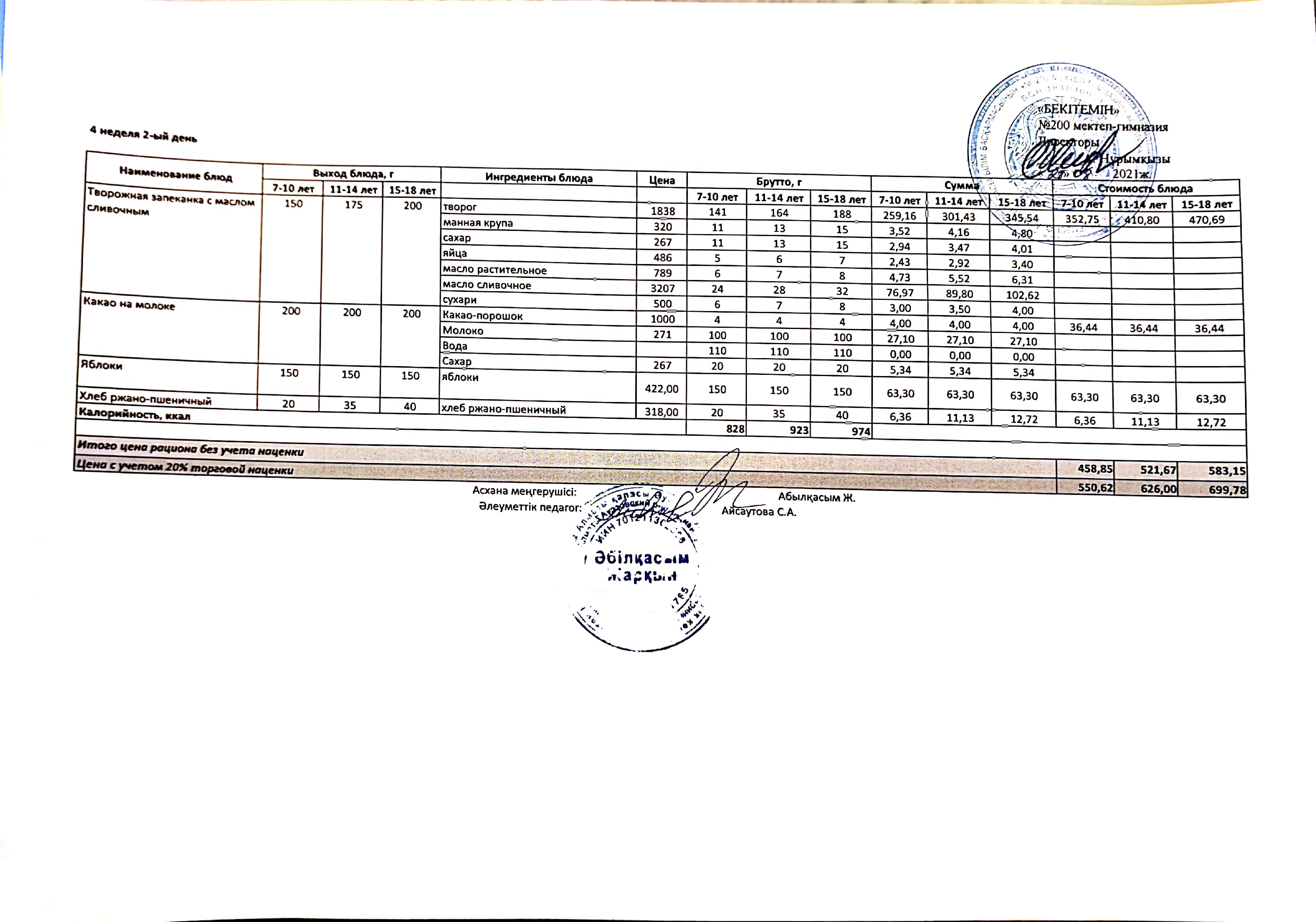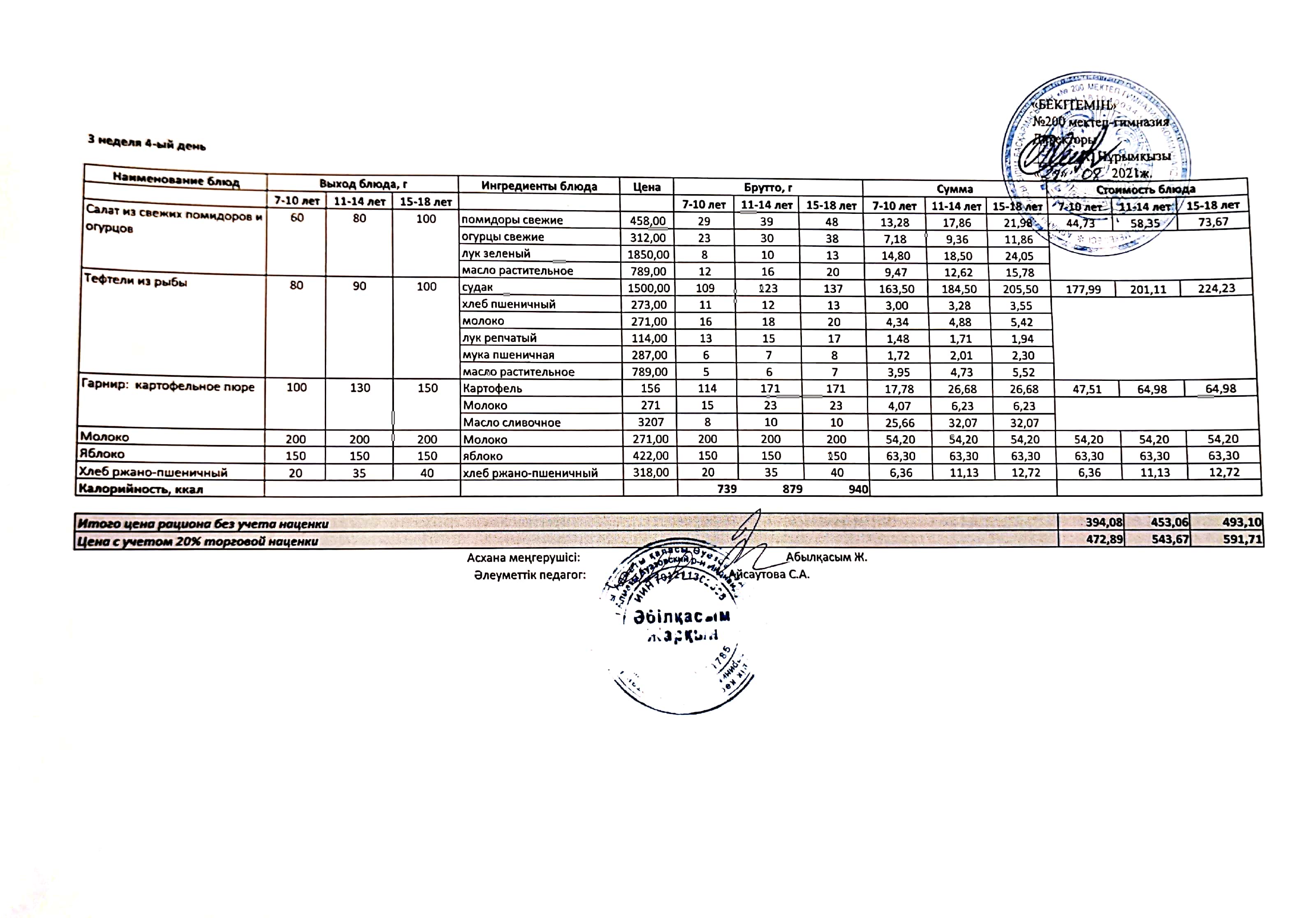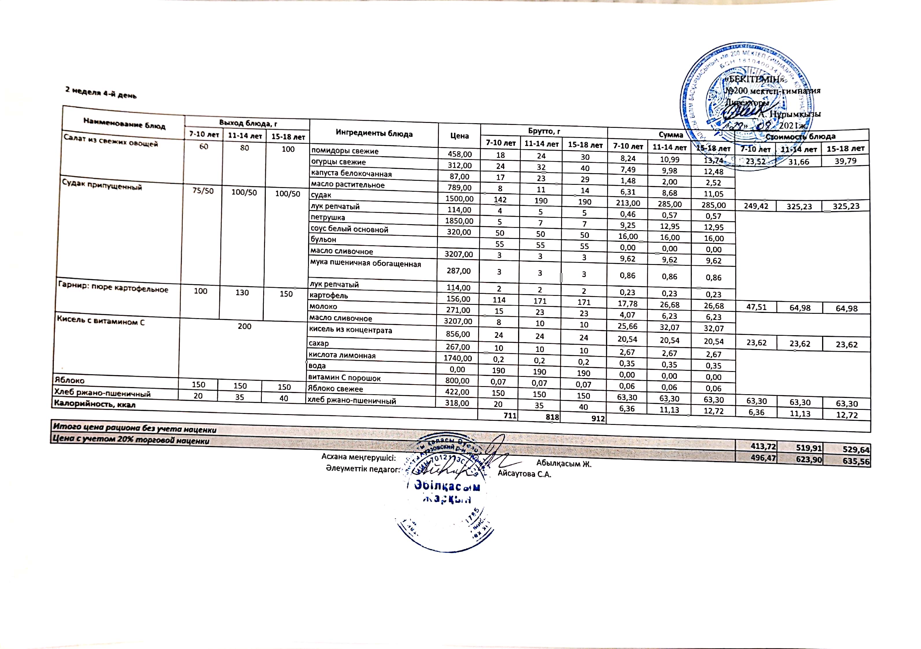 4 АПТАЛЫҚ МЕНЮ (жазғы және күзгі) 2021-2022 оқу жылы