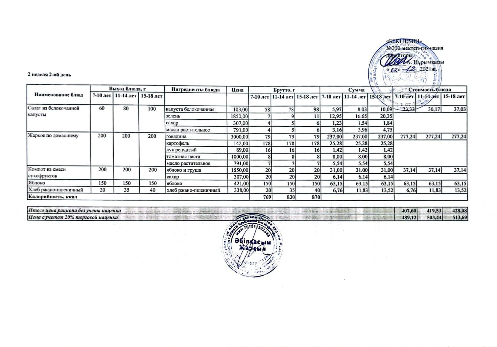 МЕНЮ (қысқы және көктемгі) 2021-2022 оқу жылы (2апта)