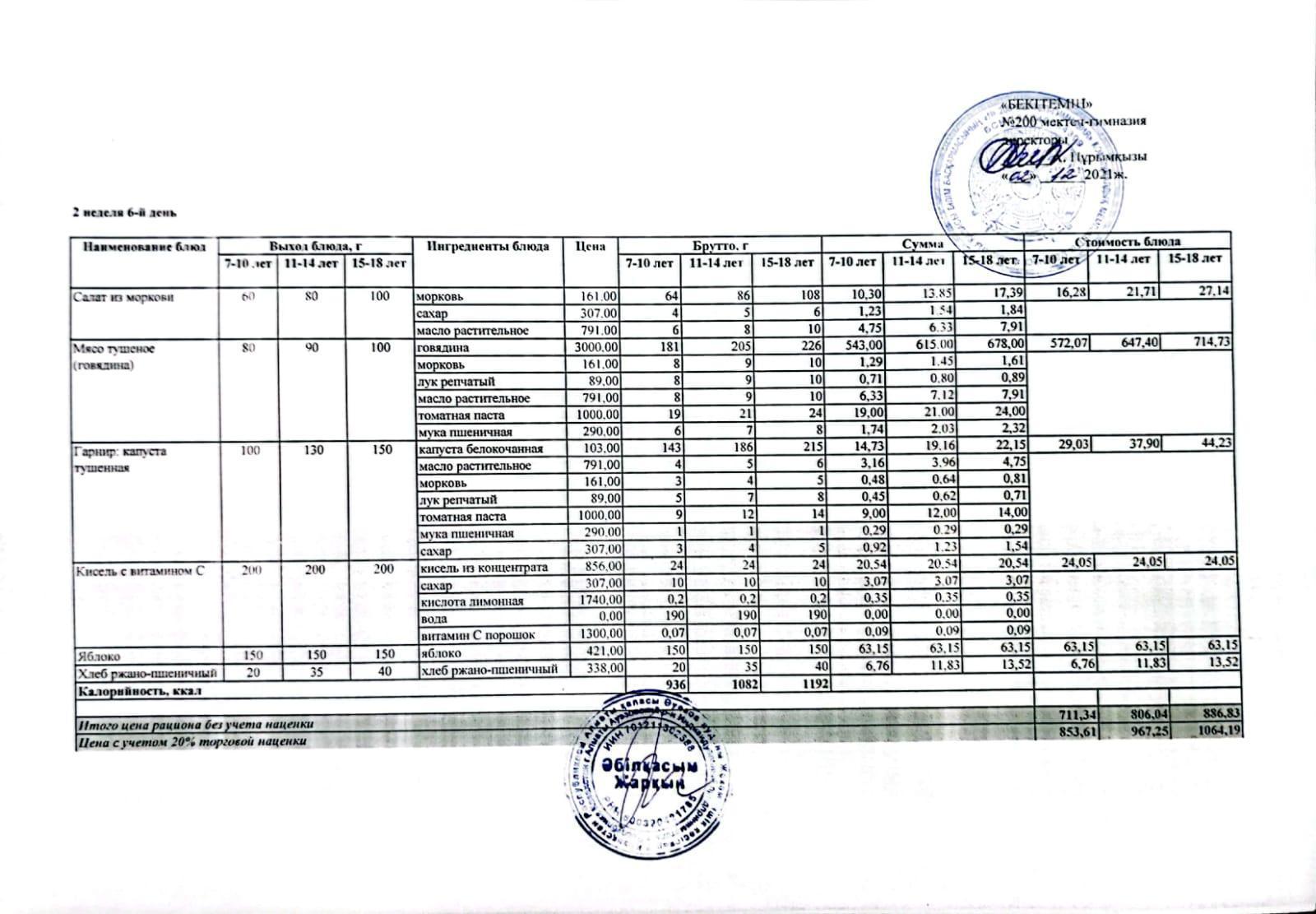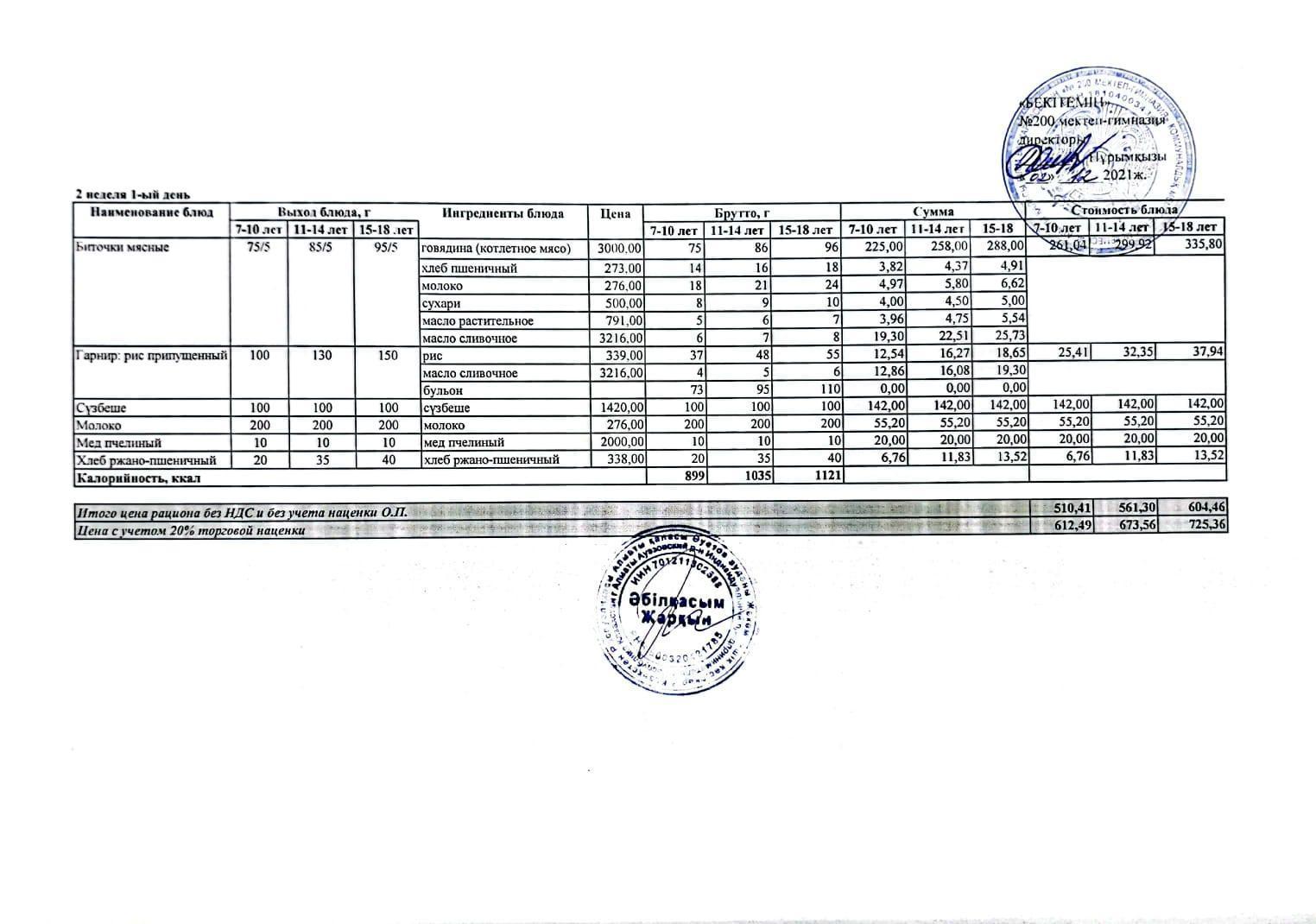 МЕНЮ (қысқы және көктемгі) 2021-2022 оқу жылы (1апта)