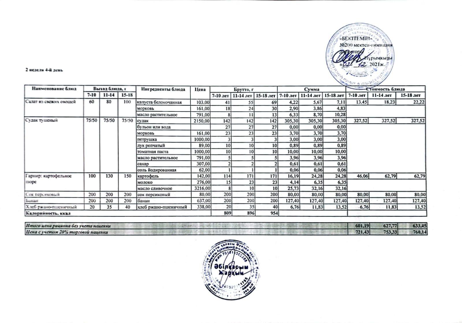 МЕНЮ (қысқы және көктемгі) 2021-2022 оқу жылы (4 апта)