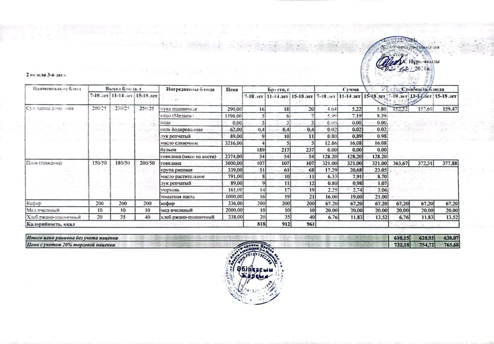 МЕНЮ (қысқы және көктемгі) 2021-2022 оқу жылы (3 апта)