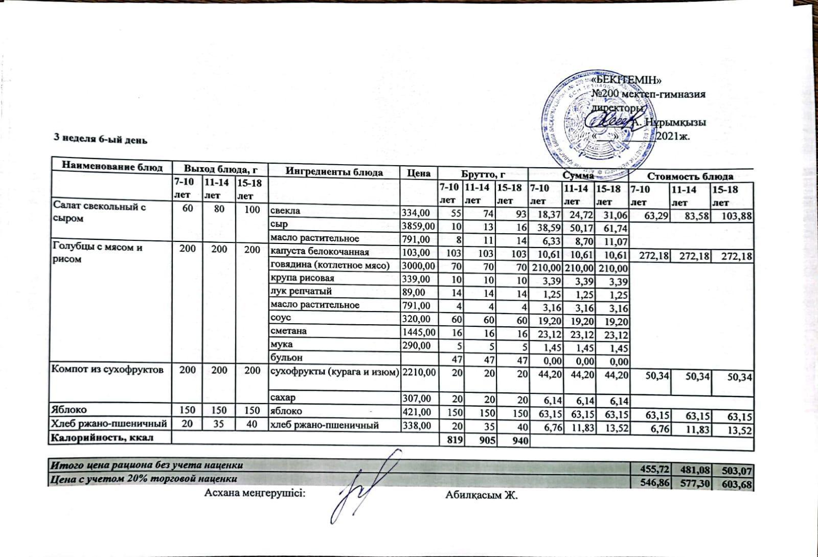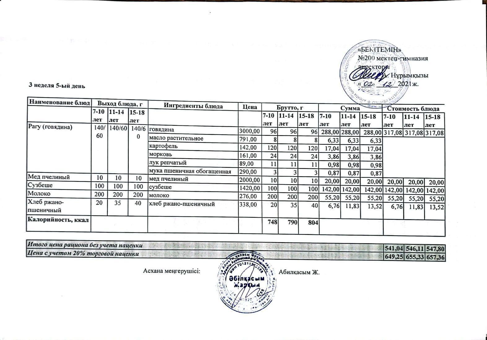 МЕНЮ (қысқы және көктемгі) 2021-2022 оқу жылы (3 апта)