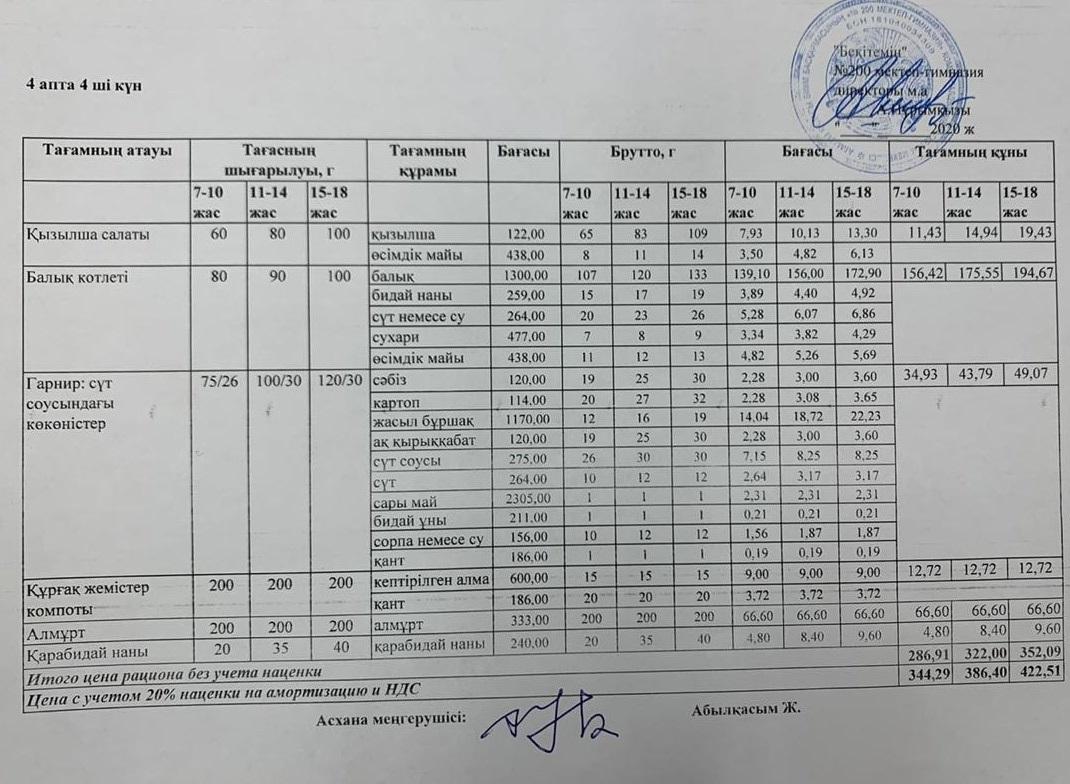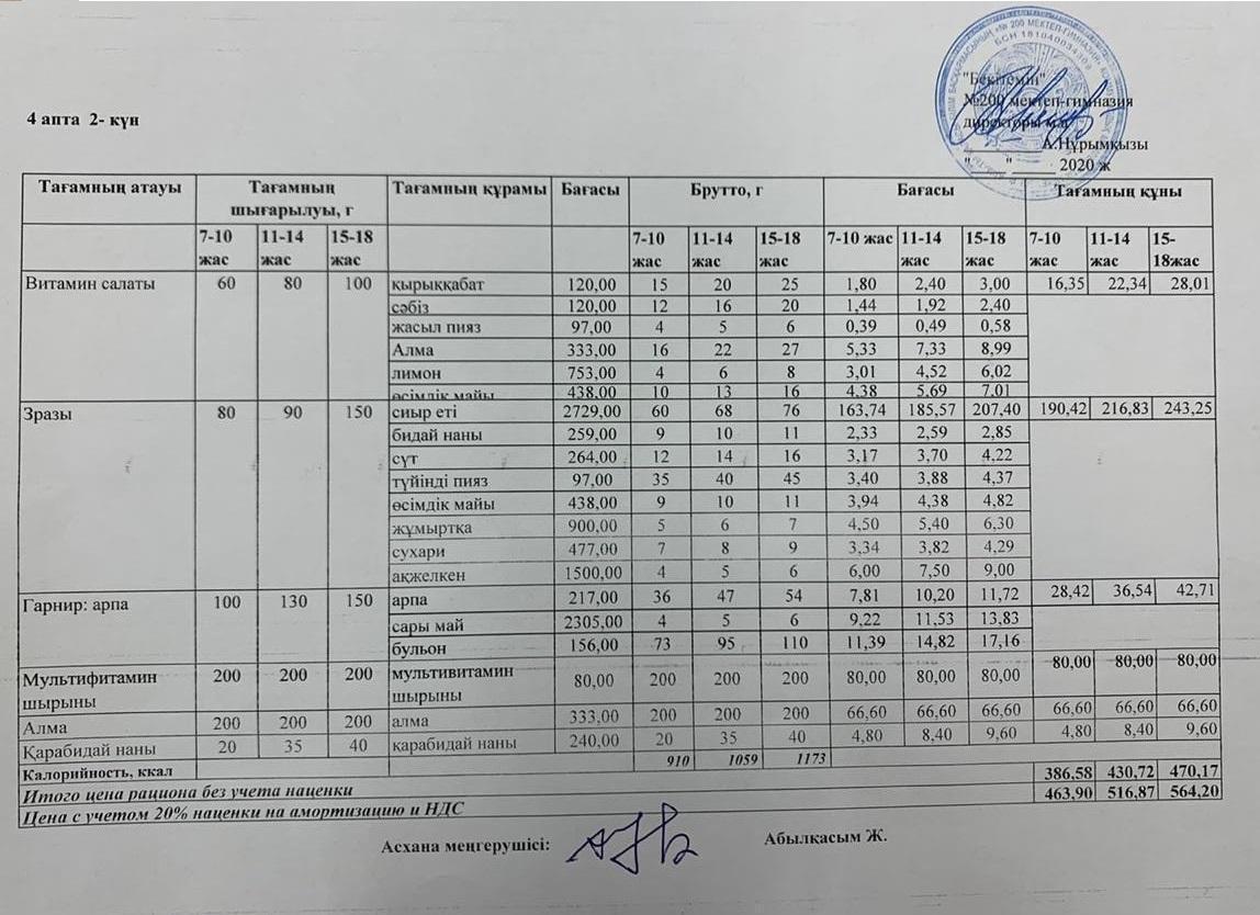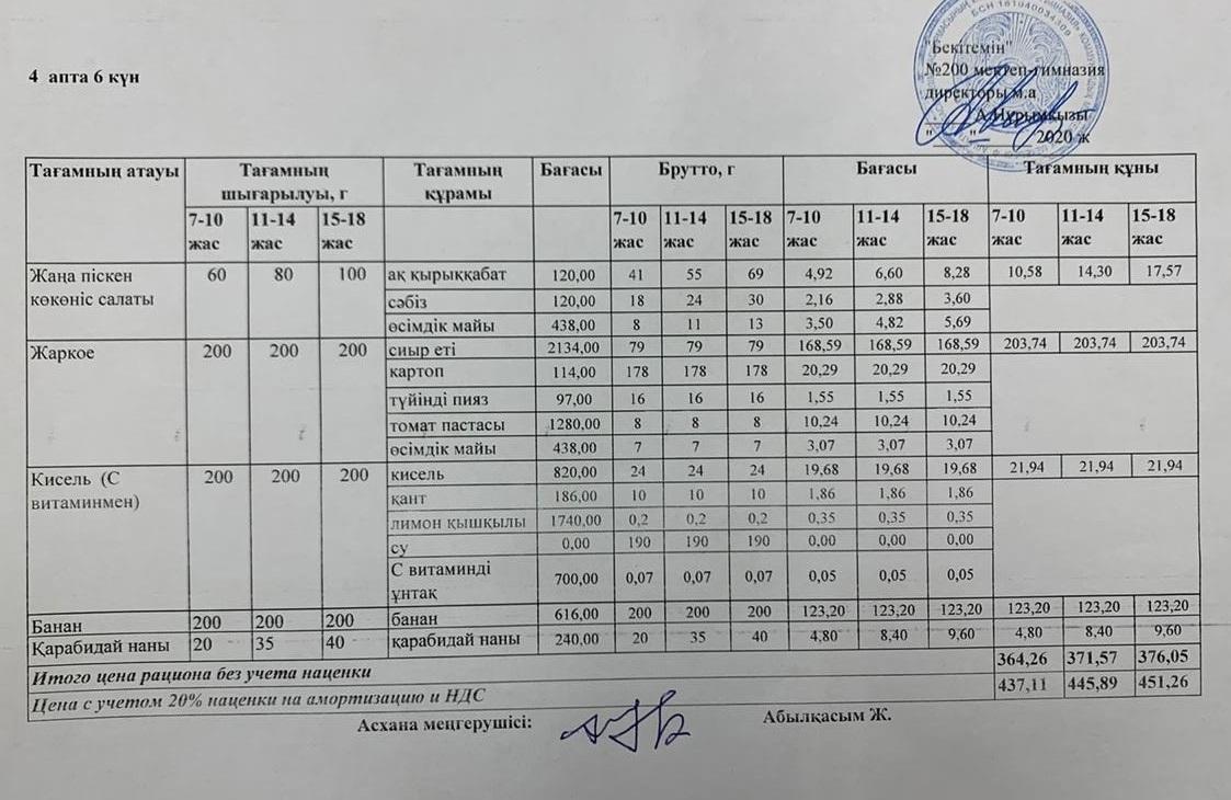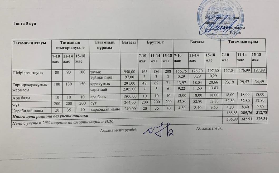 1 - 11 сынып оқушыларының асханаға тегін ыстық тамаққа бару кестесі