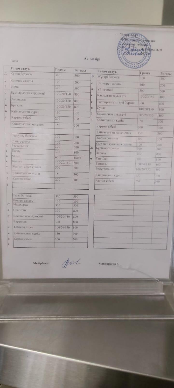 Тамақтандыру бойынша шарттар