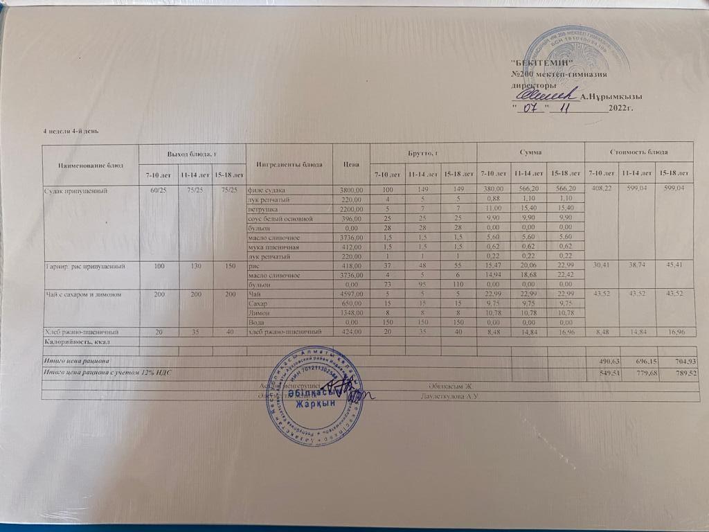 Тамақтандыру бойынша шарттар