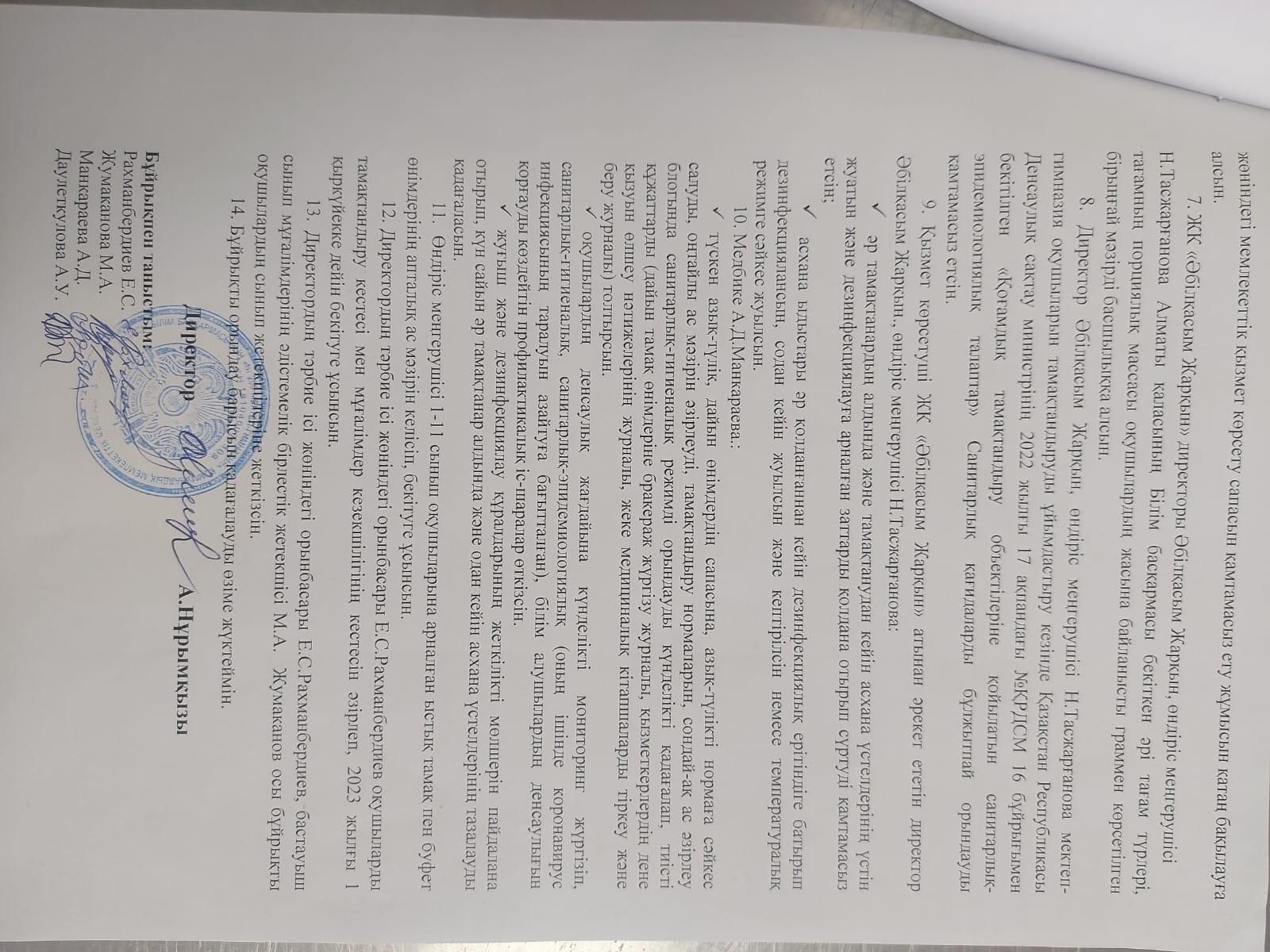 Бұйрық №101 Мектеп асханасындағы бракераж журналын жүргізу және қадағалау туралы