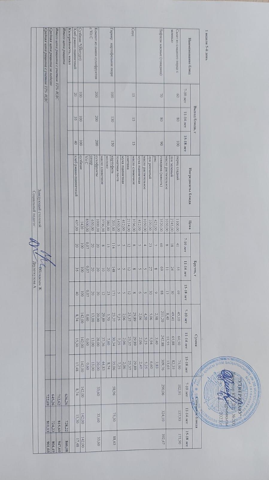 Күнделікті ас мәзірі 25.04.2022