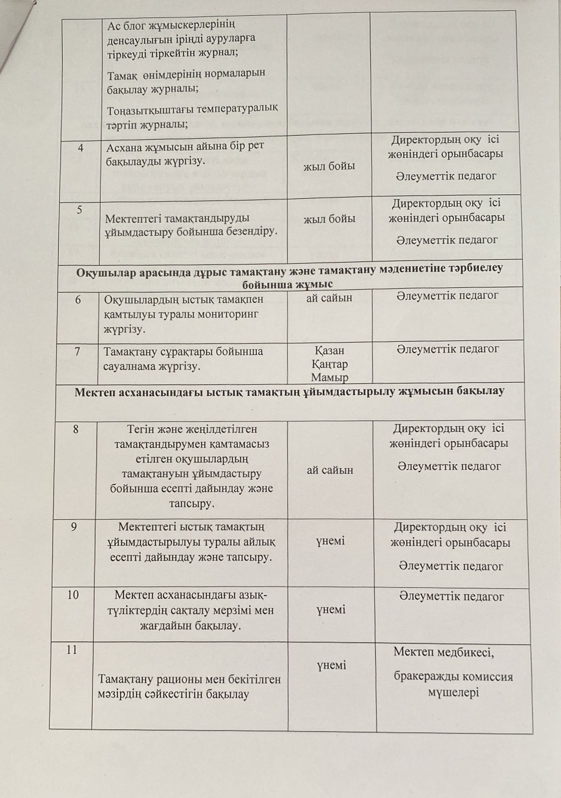 Тамақ сапасына мониторинг жүргізу комиссиясының жұмыс жоспары 2025-20256 оқу жылы
