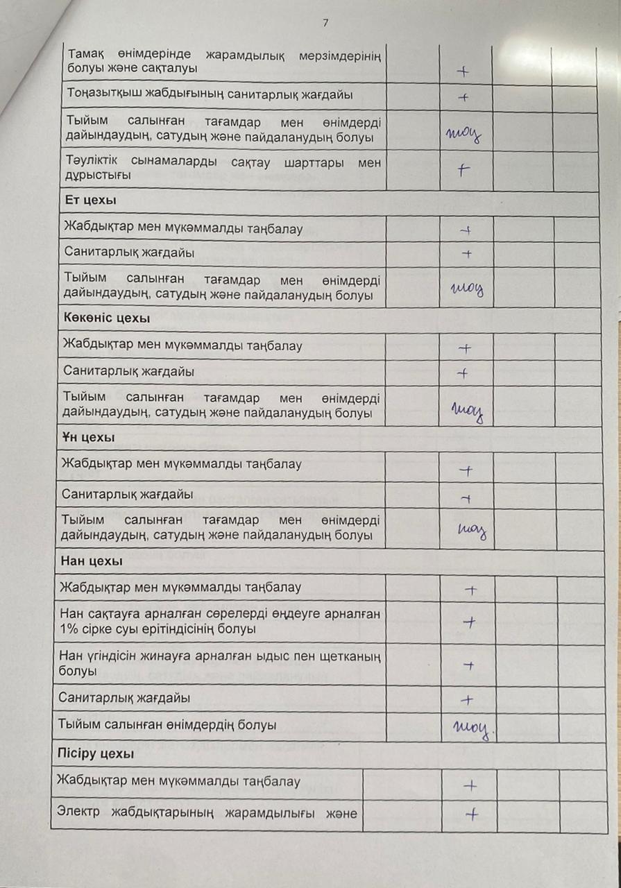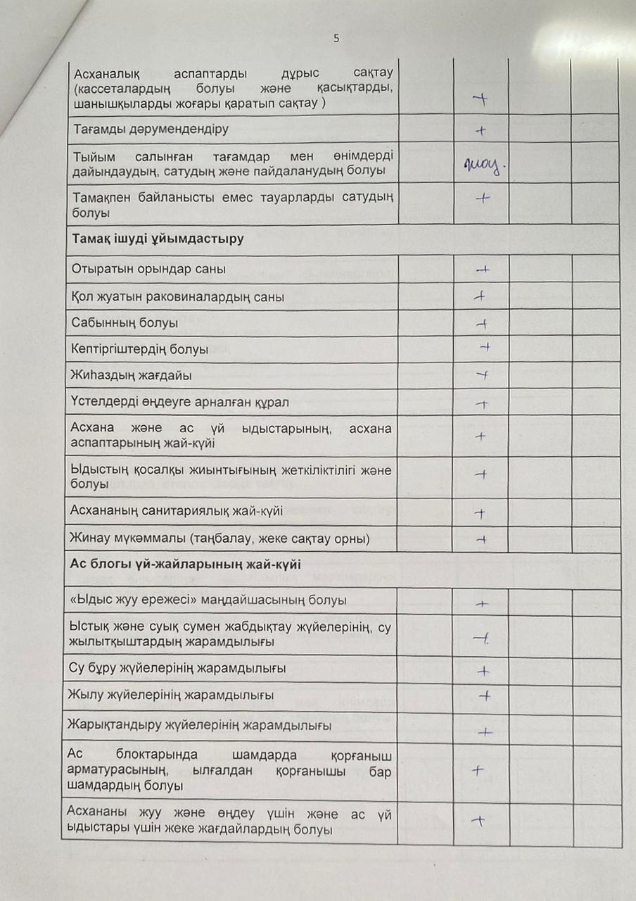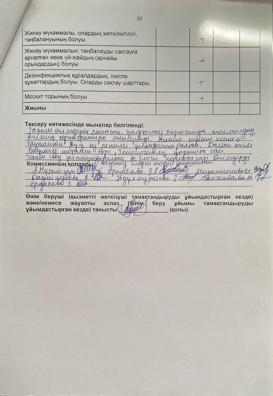 » Тамақтану сапасына мониторинг жүргізу актісі