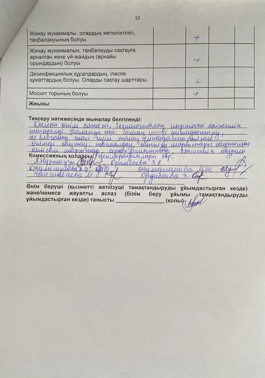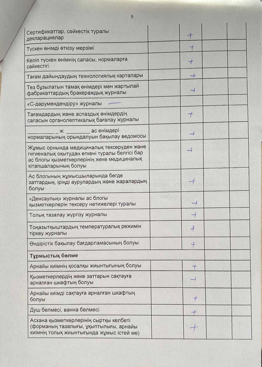 » Тамақтану сапасы мониторинг жүргізу АКТ-сі