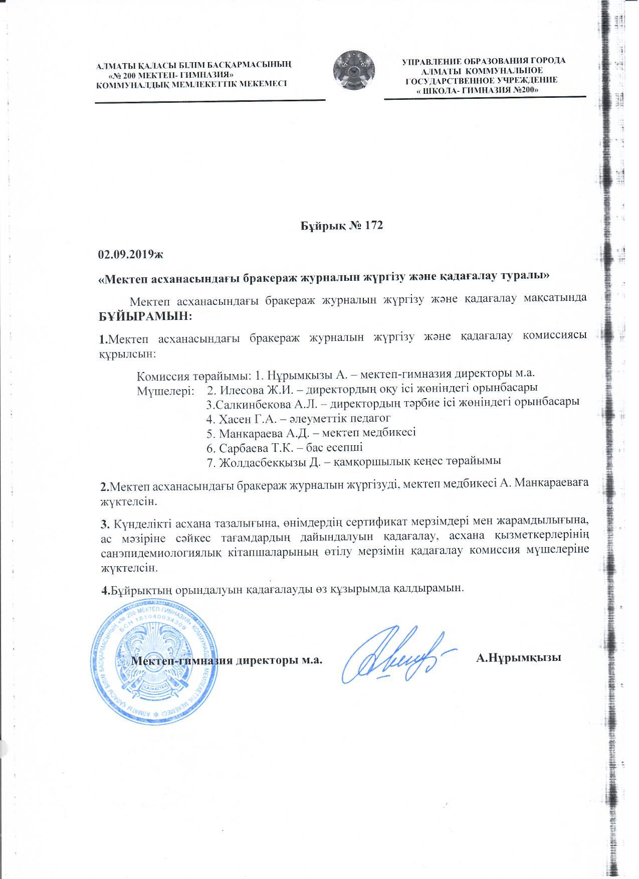 Бұйрық №172